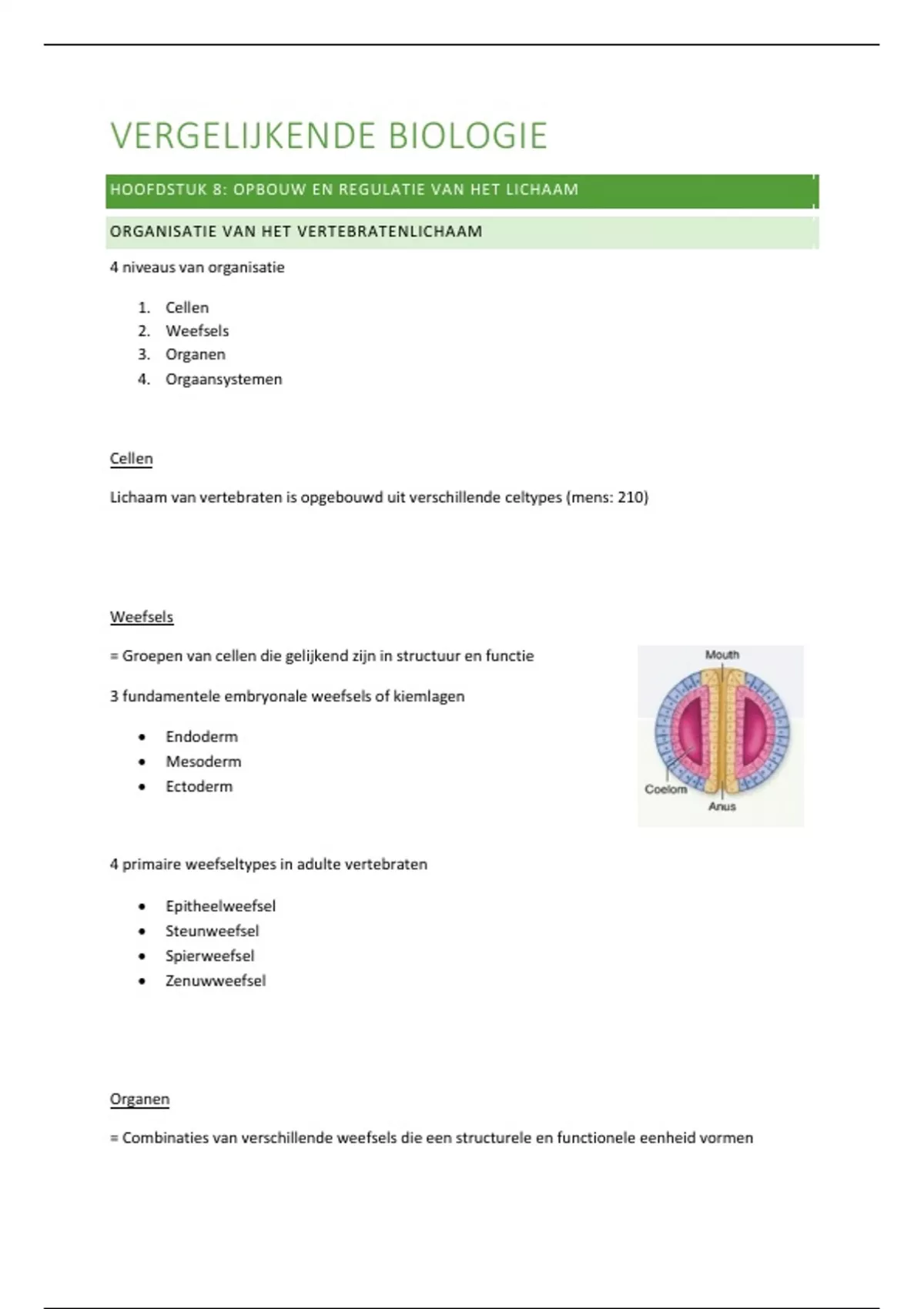 ORGANISATIE VAN HET VERTEBRATENLICHAAM