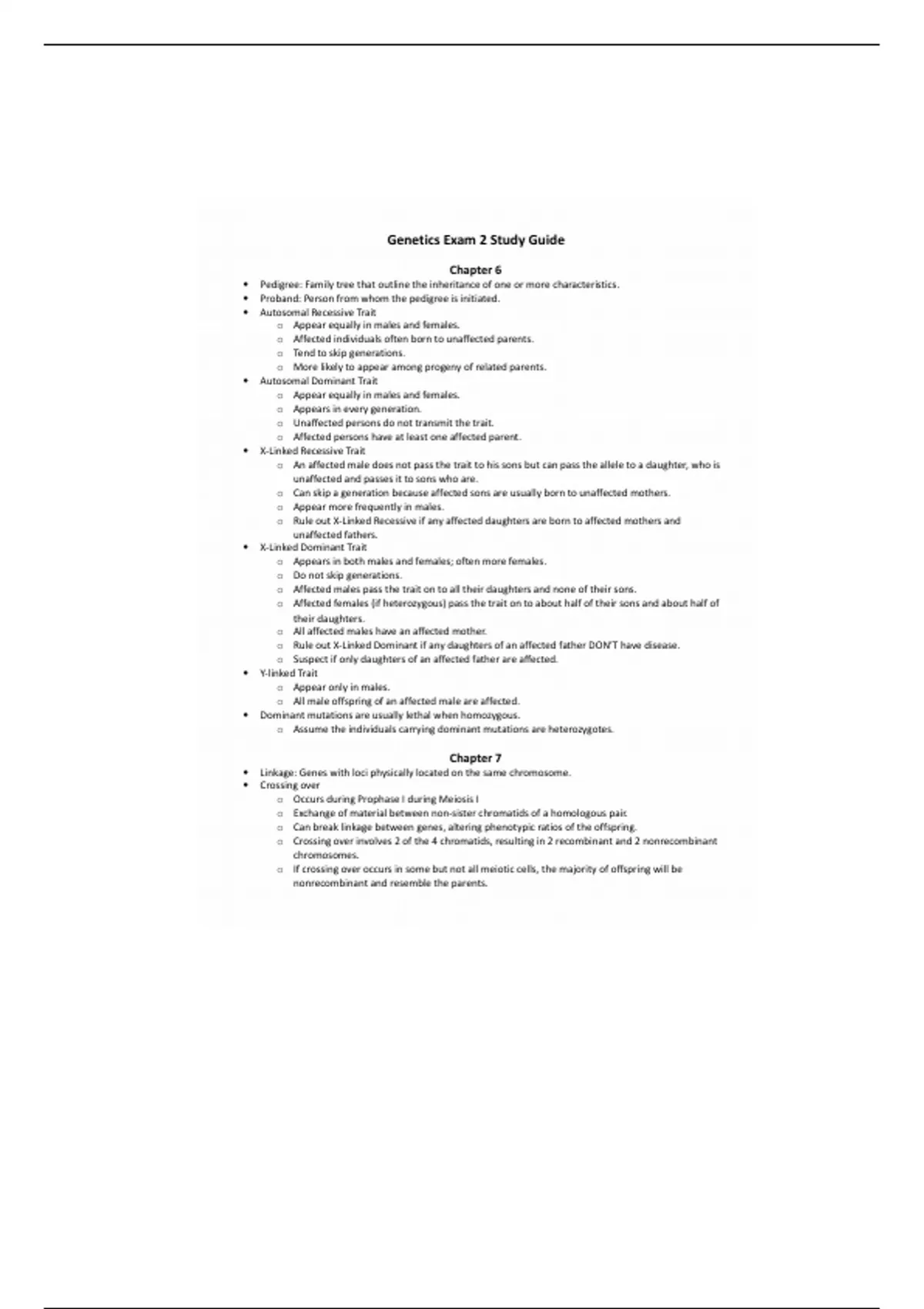 o Rule out X-Linked Dominant if any daughters of an affected father DON’T have disease.