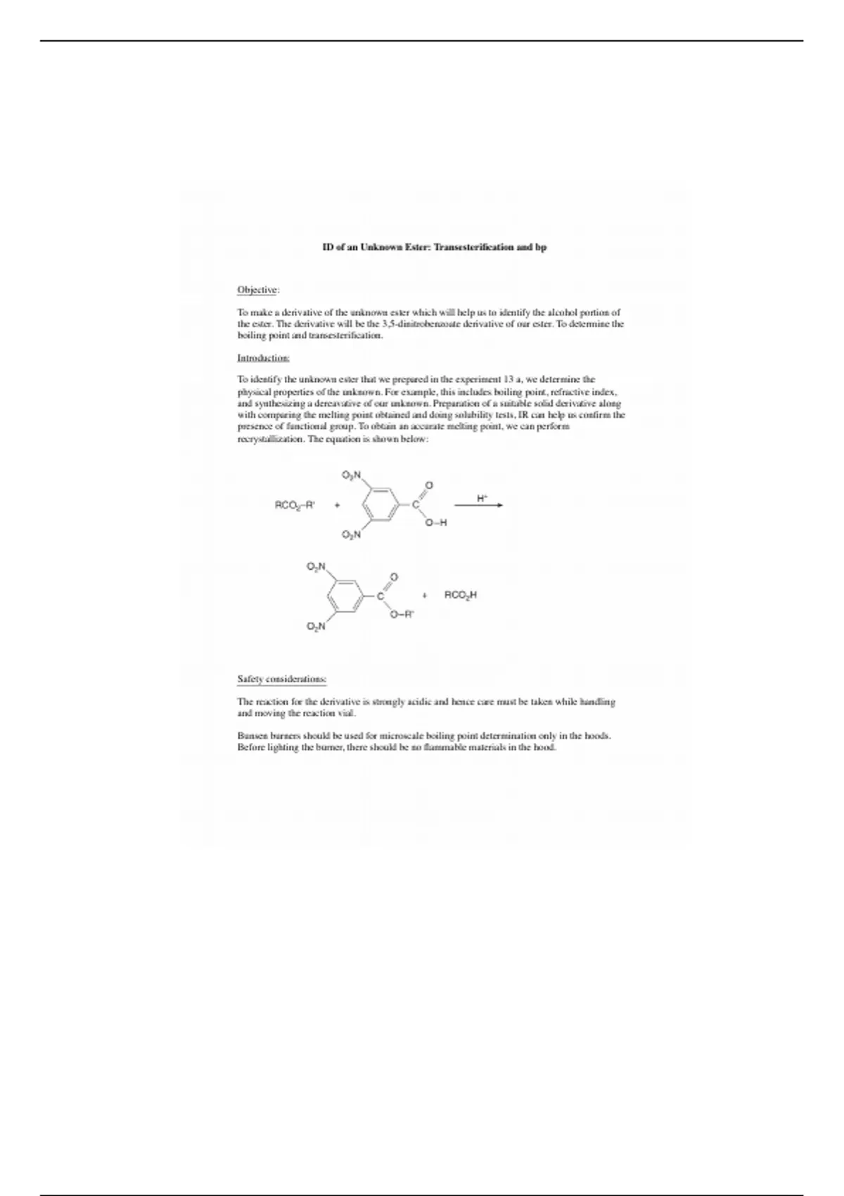 Identification of an unknown ester - notes