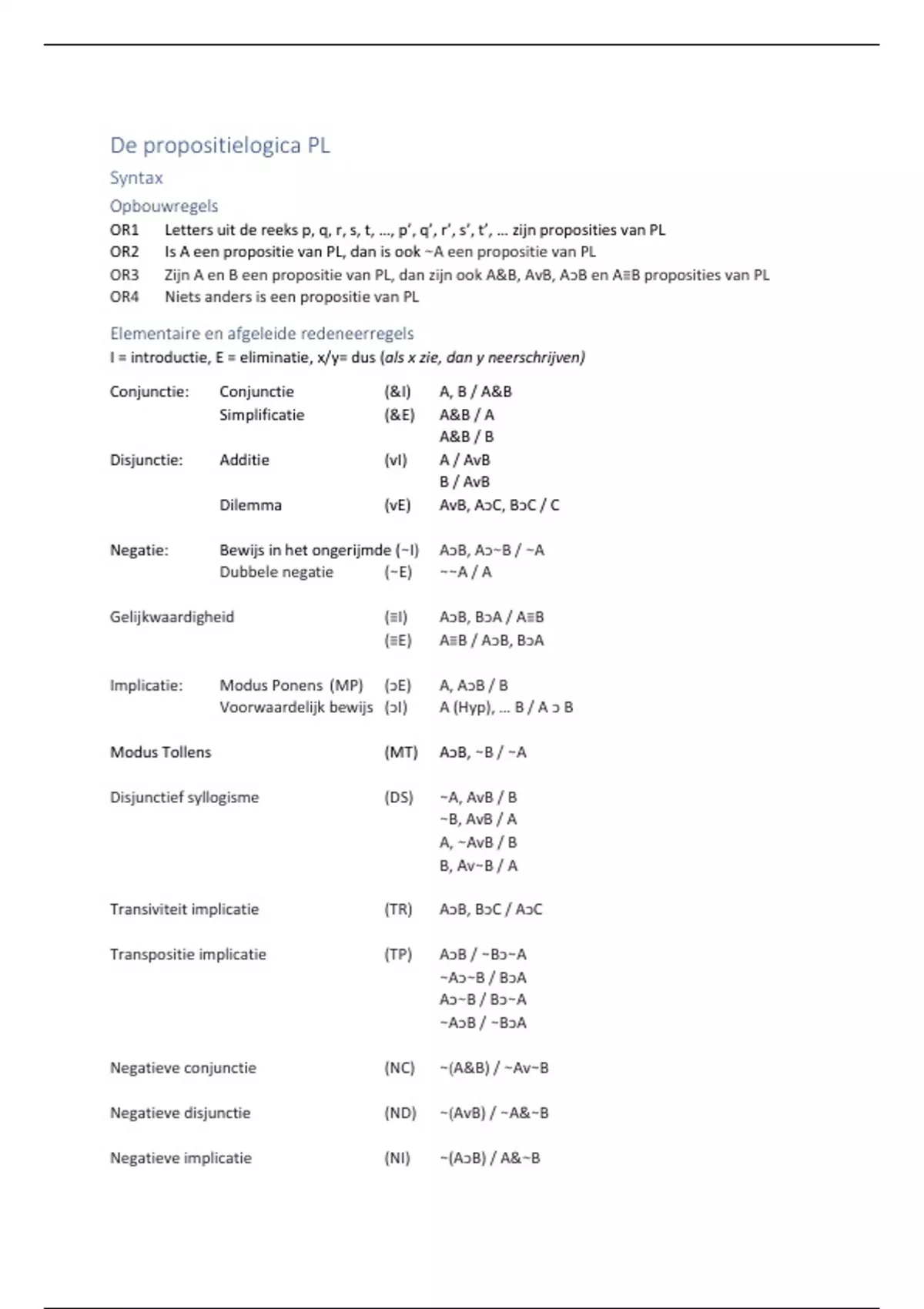 I = introductie, E = eliminatie, x/y= dus (als x zie, dan y neerschrijven)