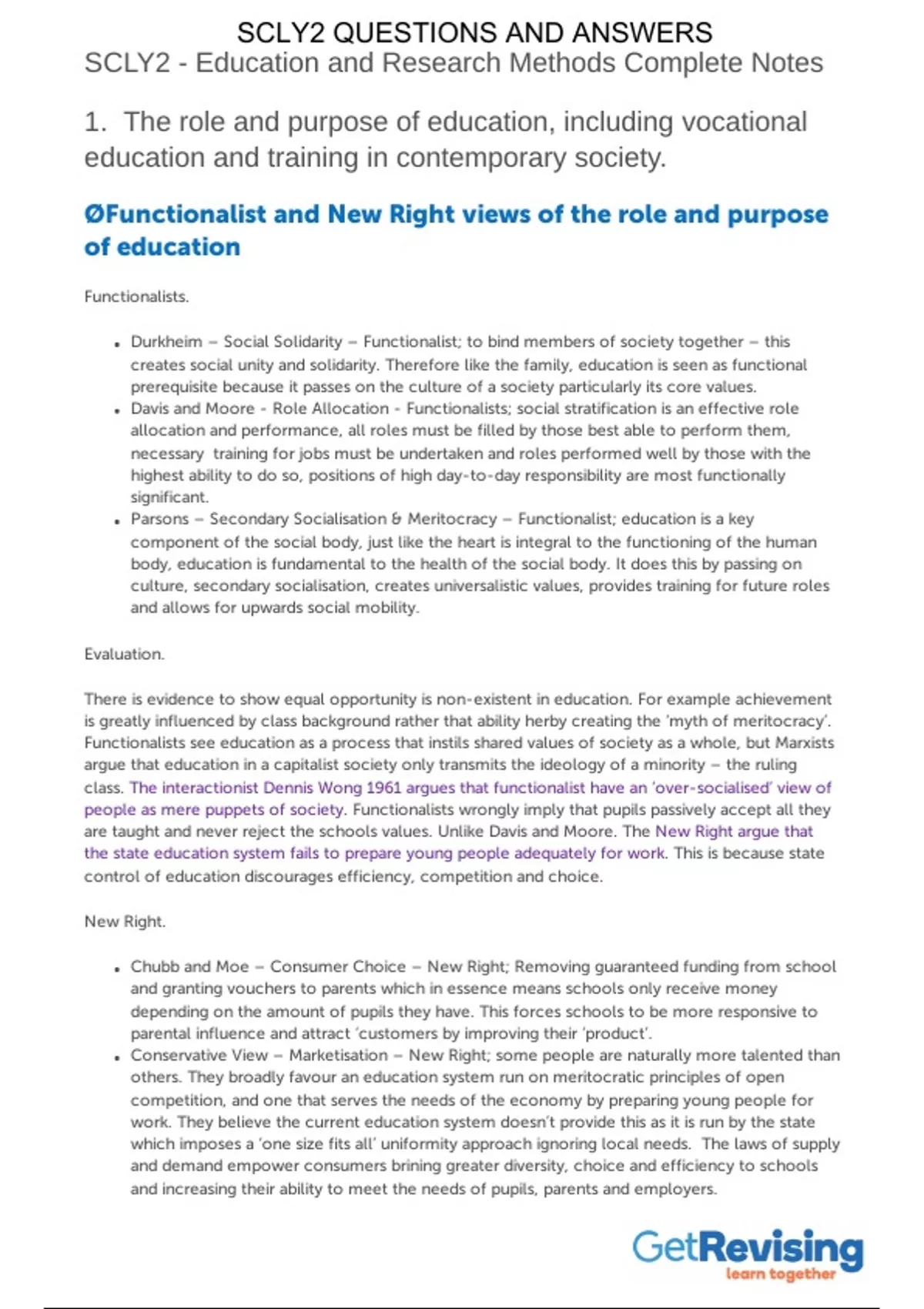 Summary SCLY2 - Education and Research Methods Complete Notes