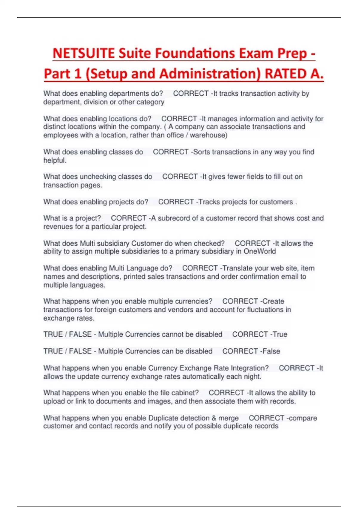 NETSUITE Suite Foundations Exam Prep - Part 1 (Setup and Administration) RATED A.