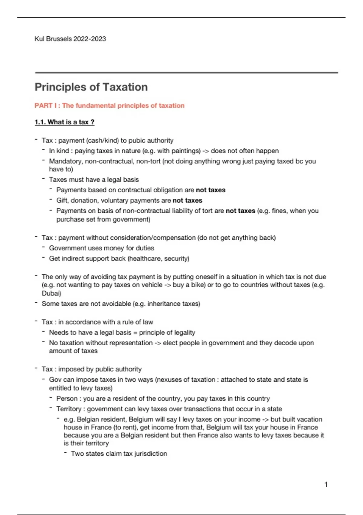 Full summary of the course Principles of Taxation in third year of bachelor in Business Administration at the KUB