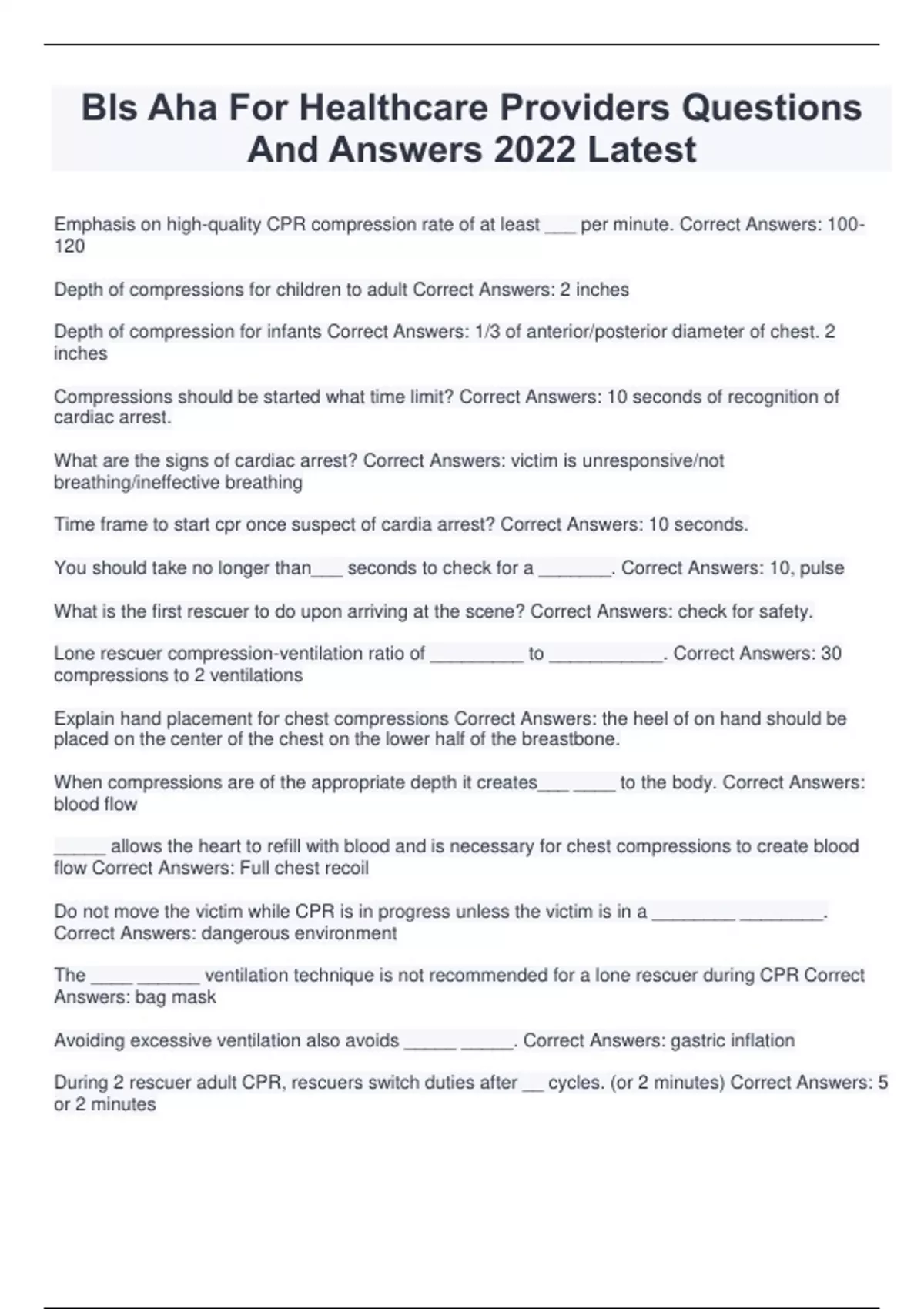 Bls Aha For Healthcare Providers Questions And Answers 2022 Latest
