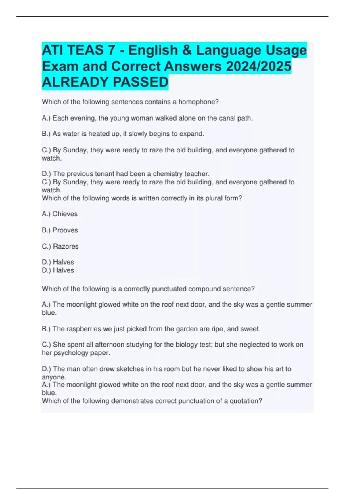 BEST REVIEW ATI TEAS 7 - English & Language Usage Exam and Correct Answers 2024/2025 ALREADY PASSED