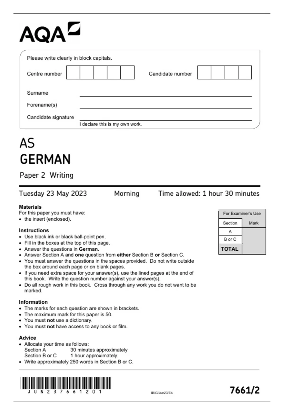 Tuesday 23 May 2023 Morning Time allowed: 1 hour 30 minutes