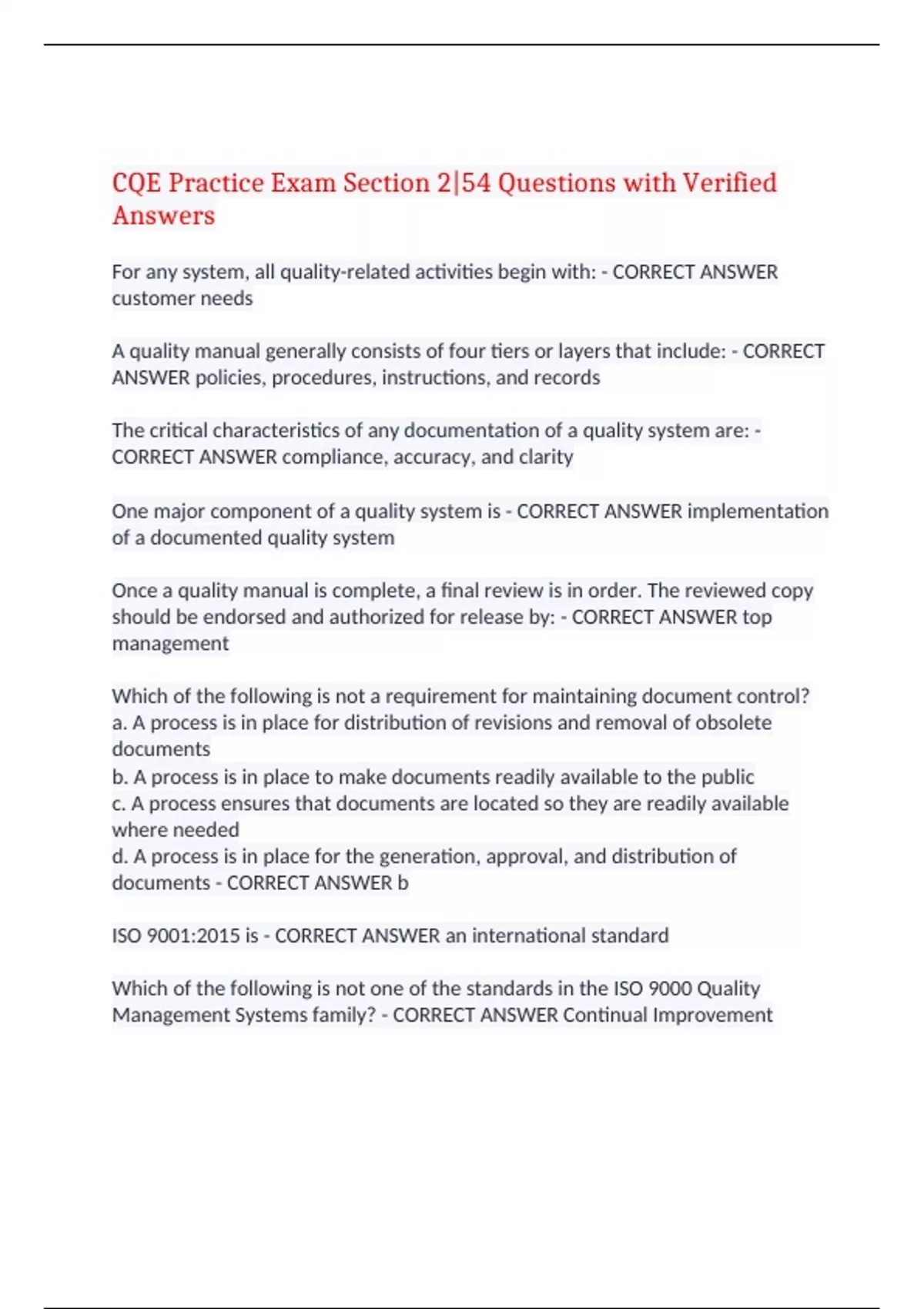 CQE Practice Exam Section 2|54 Questions with Verified Answers,100% CORRECT