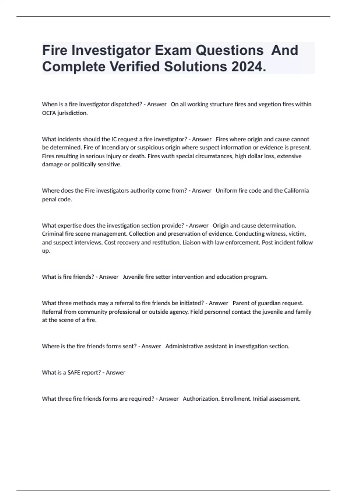 Fire Investigator Exam Questions And Complete Verified Solutions 2024.