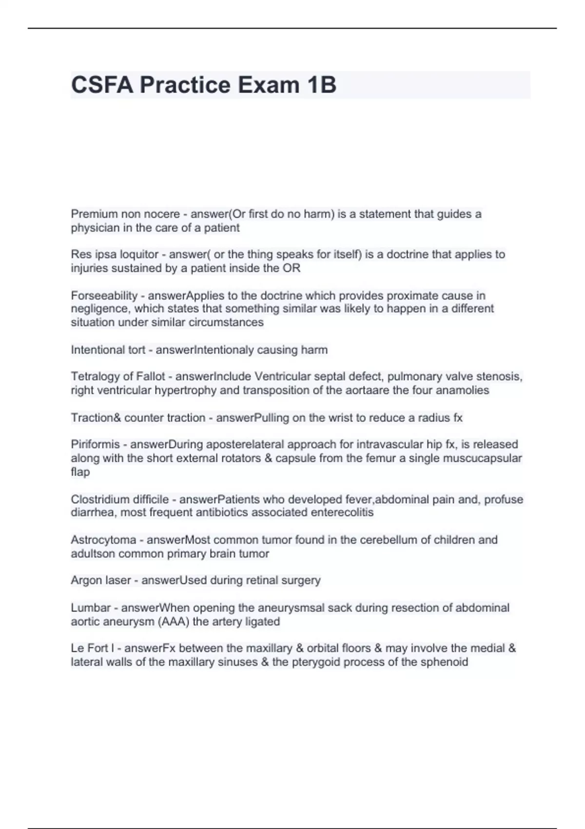 CSFA Practice Exam 1B Questions and Answers Graded A
