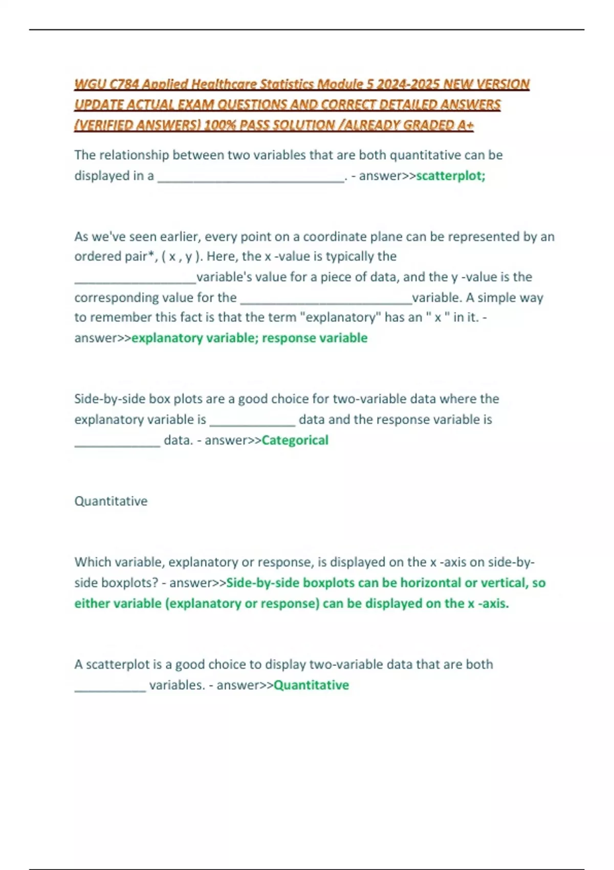 WGU C784 Applied Healthcare Statistics Module NEW VERSION UPDATE ACTUAL EXAM QUESTIONS AND CORRECT DETAILED ANSWERS (VERIFIED ANSWERS) 100% PASS SOLUTION /ALREADY GRADED A+