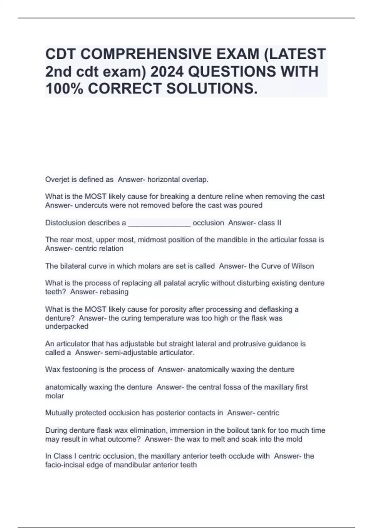 CDT COMPREHENSIVE EXAM (LATEST 2nd cdt exam) 2024 QUESTIONS WITH 100% CORRECT SOLUTIONS.