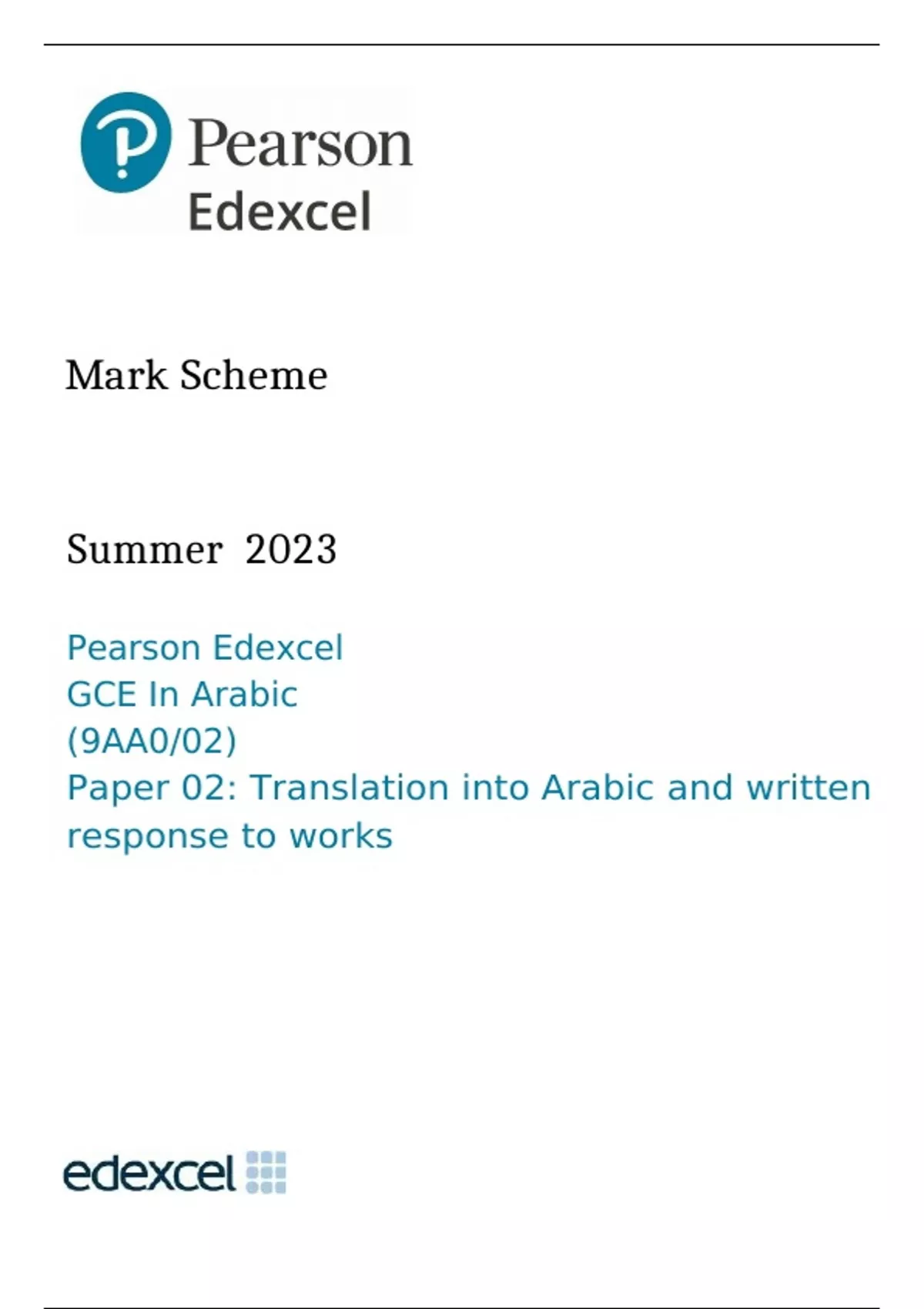 , Paper 2 Translation into Arabic and Written Response to Works