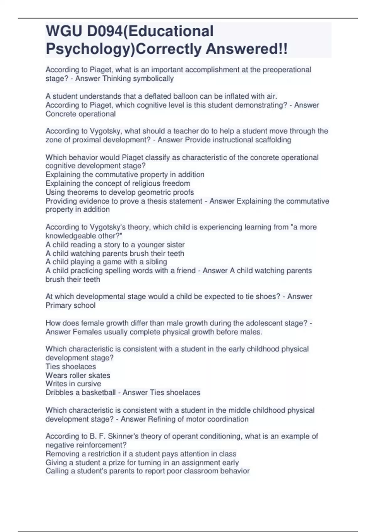 WGU D094(Educational Psychology) Questions and Correctly Answered!!
