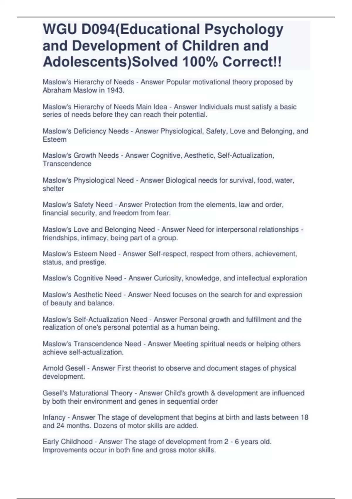 WGU D094(Educational Psychology and Development of Children and Adolescents)Solved 100% Correct!!