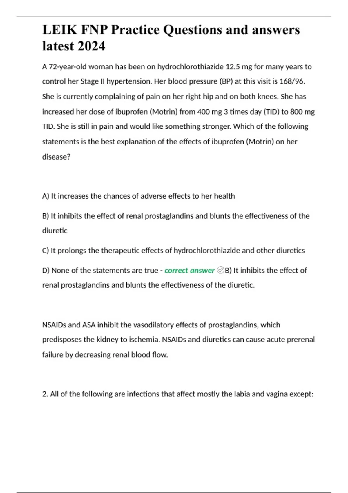 FNP Practice Exam Questions and verified Answers latest exam 2024
