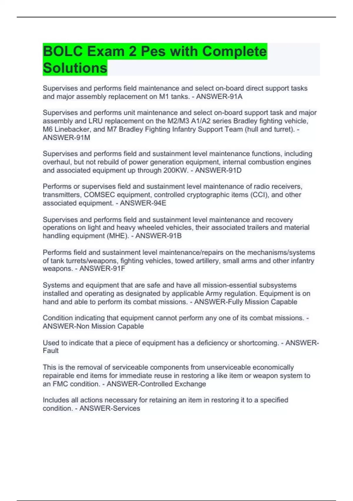 FA BOLC /Aviation BOLC/BOLC - TACLOG/ADA BOLC/MP-BOLC/AMEDD BOLC/TACOPS MP BOLC Exams Package Deal -Solved