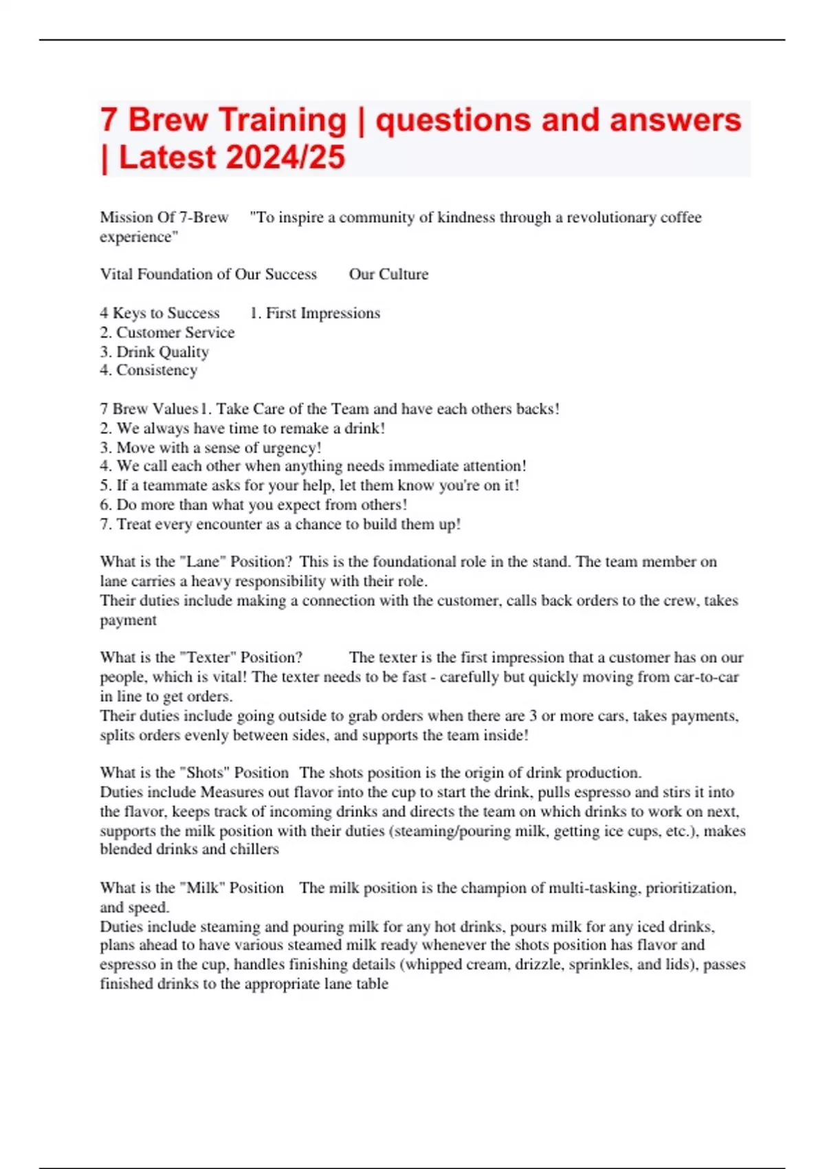 7 Brew Training | questions and answers | Latest 2024/25