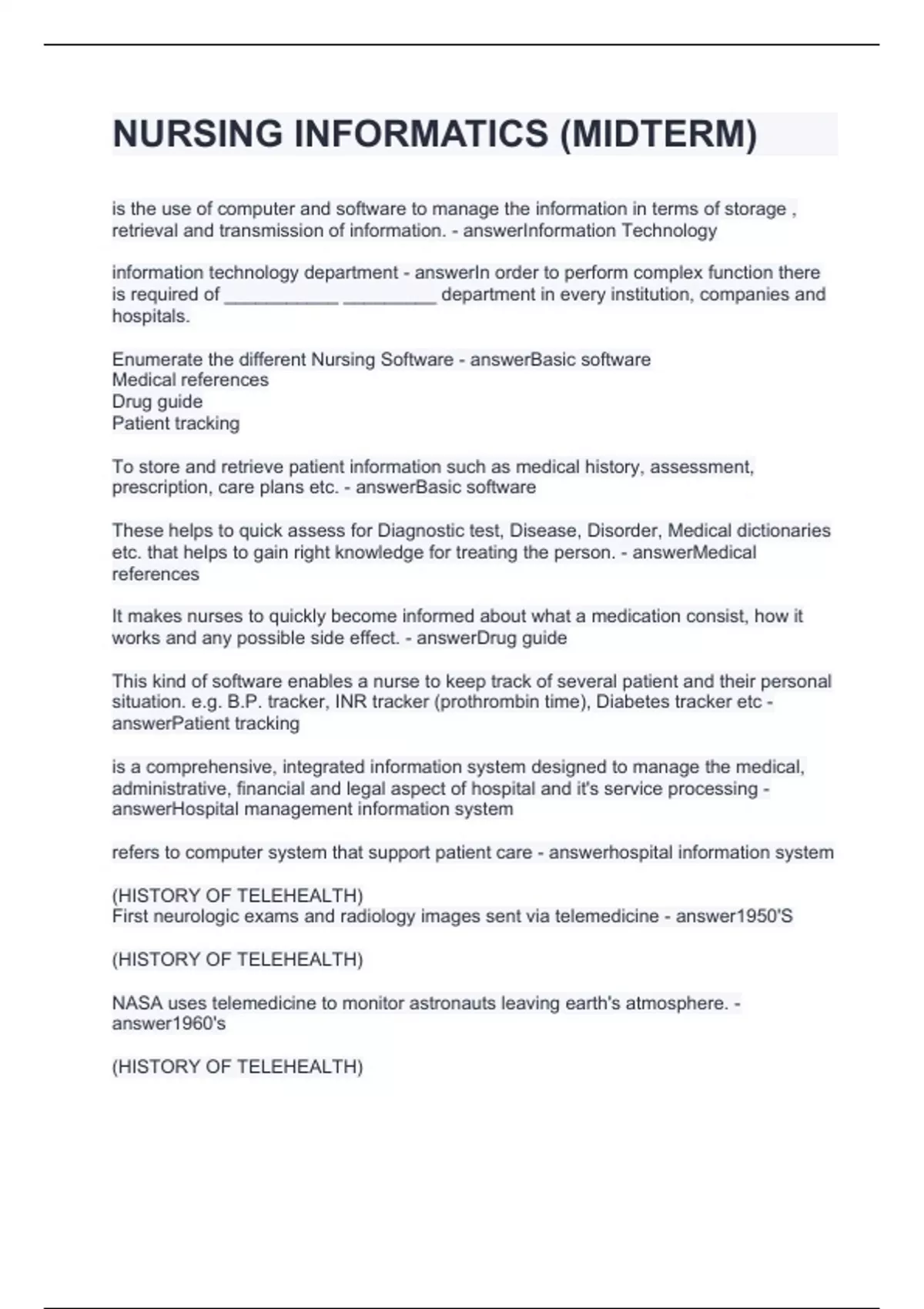 NURSING INFORMATICS (MIDTERM).All the answers accurate