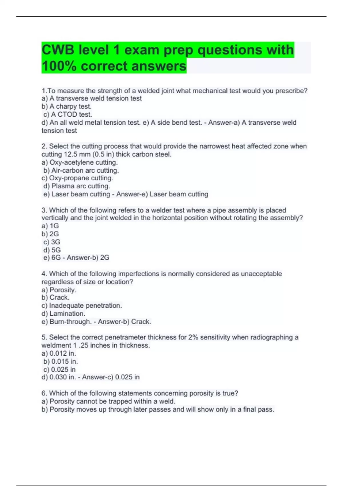CWB level 1 exam prep questions with 100% correct answers