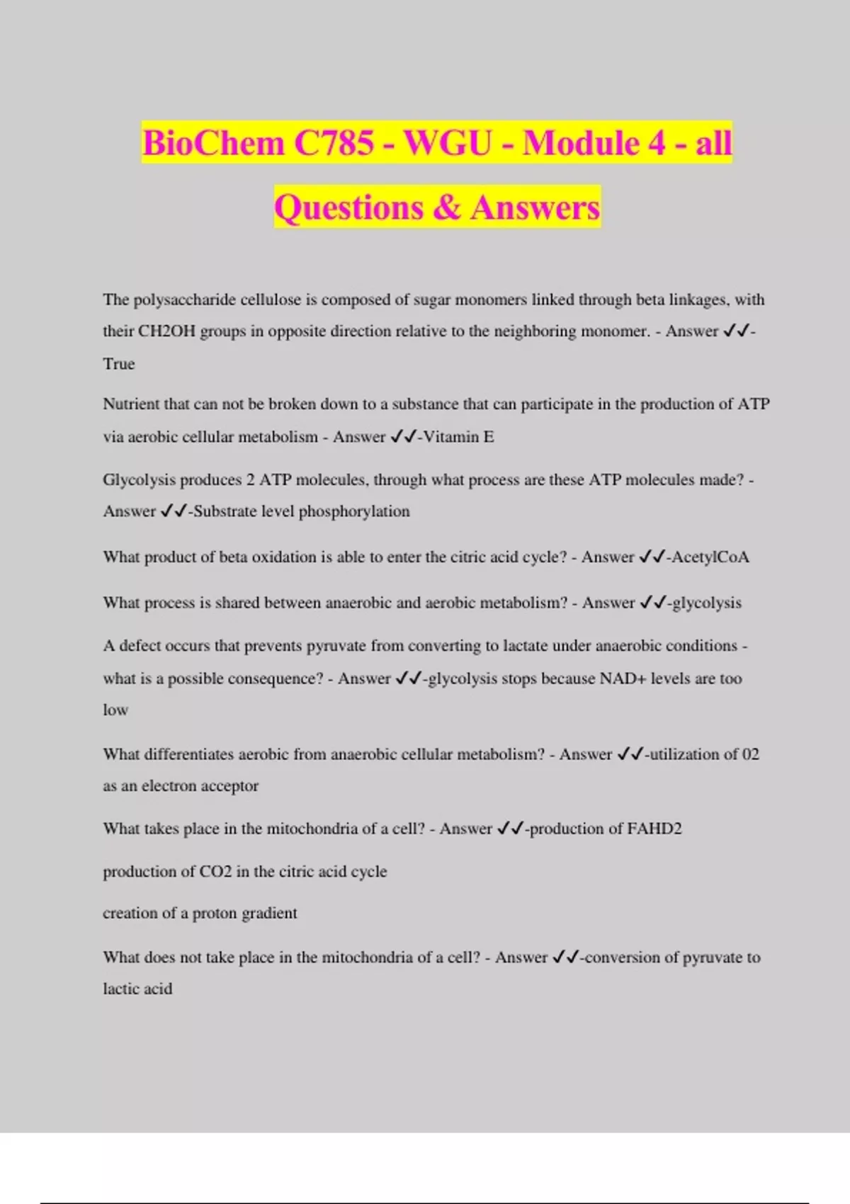 BioChem C785 - WGU - Module 4 - all Questions & Answers
