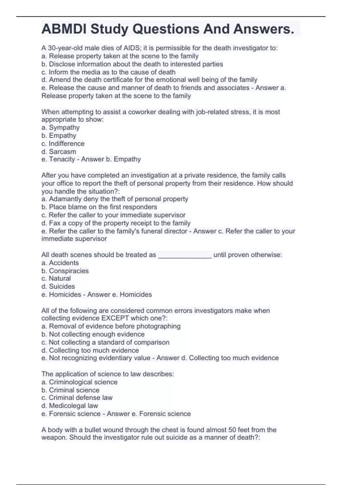 ABMDI Study Questions And Answers.
