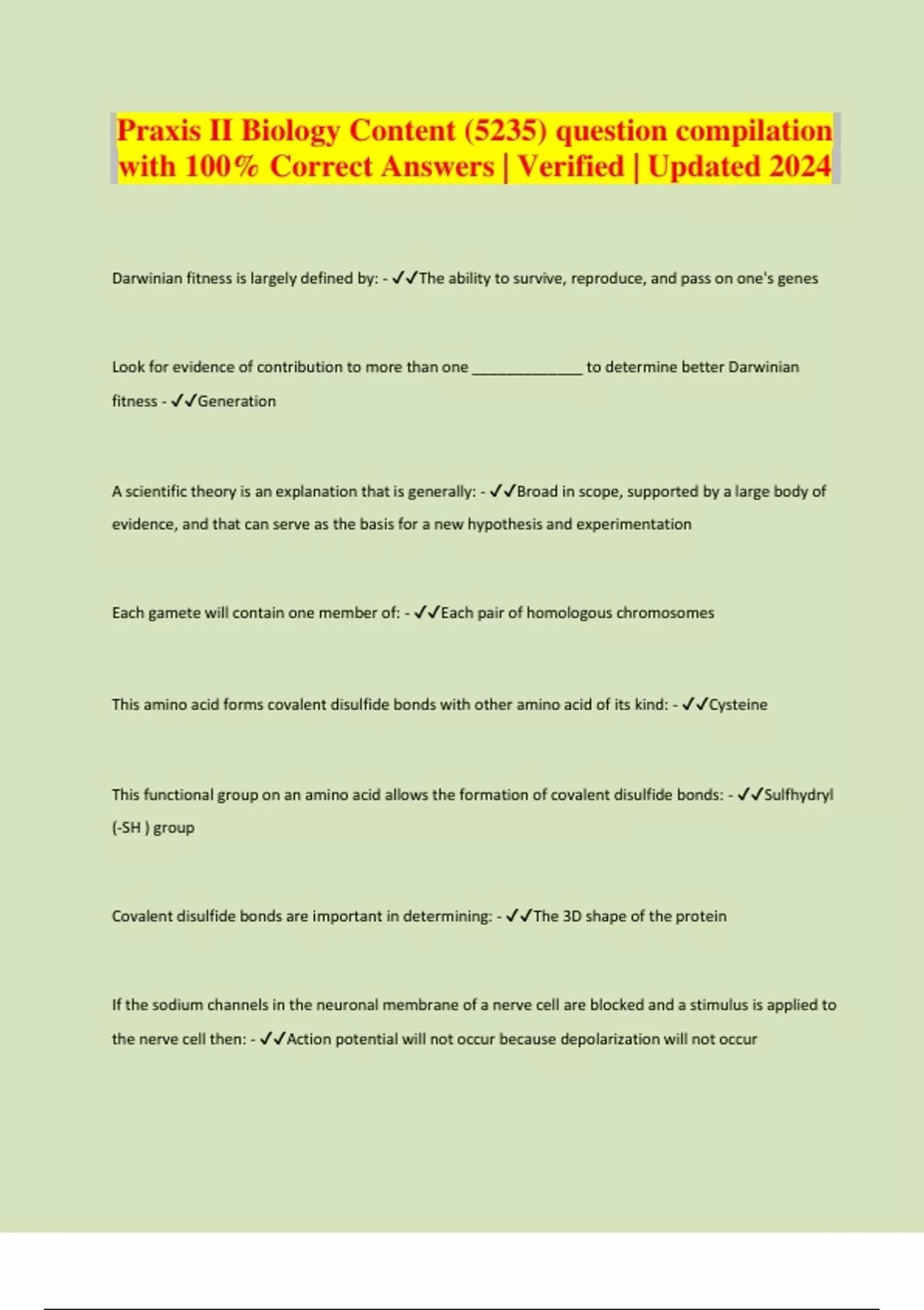 Praxis II Biology Content (5235) question compilation with 100% Correct Answers | Verified | Updated 2024