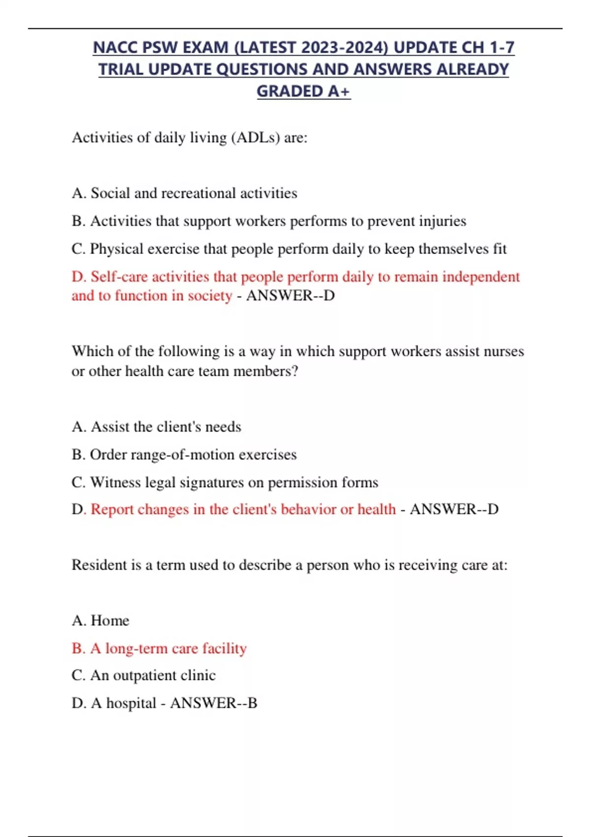 , NACC PSW EXAM (LATEST 2023-2024) UPDATE CH 1-7