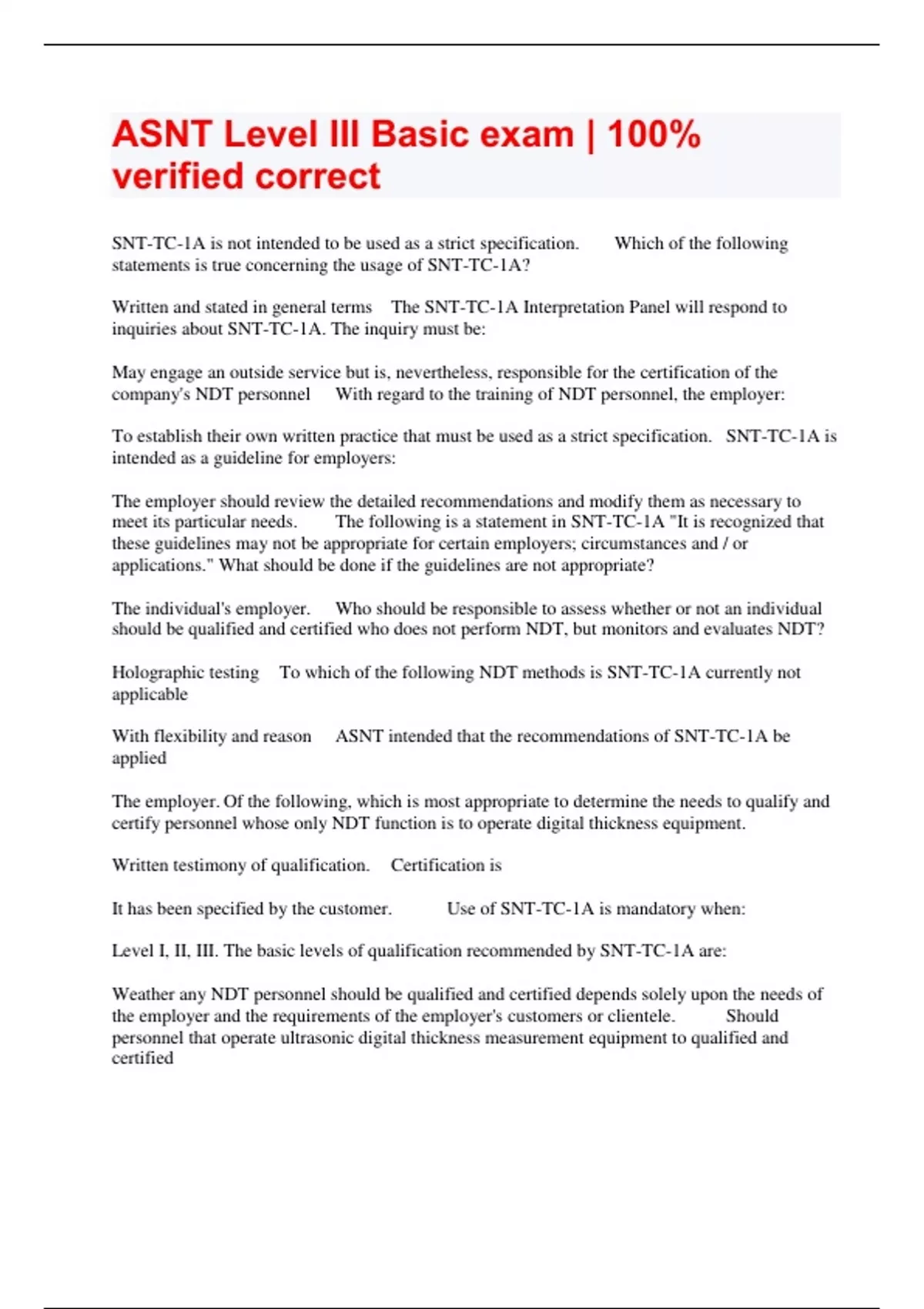 asnt level iii basic exam 100 verified correct