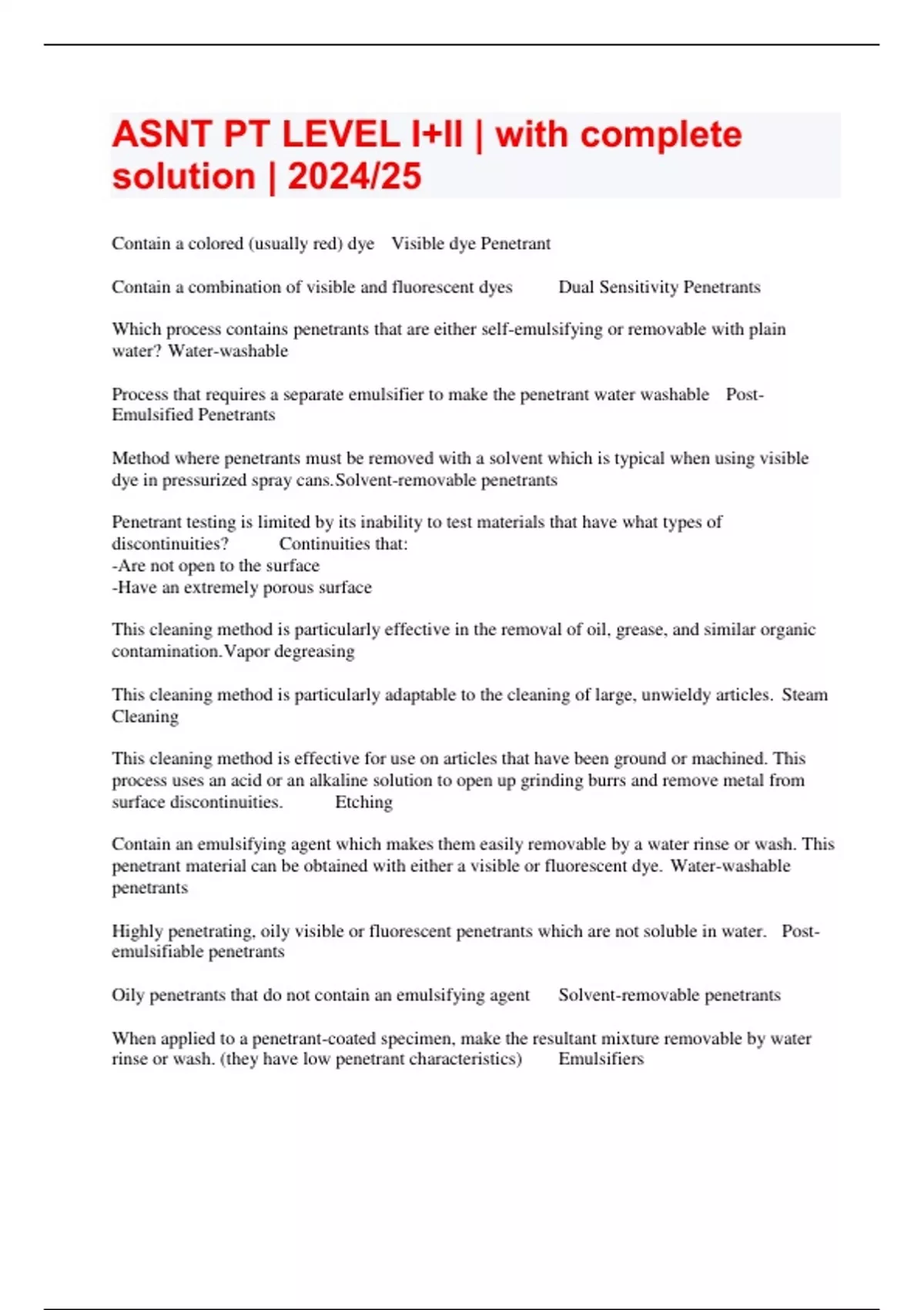 ASNT PT LEVEL I+II | with complete solution | 2024/25