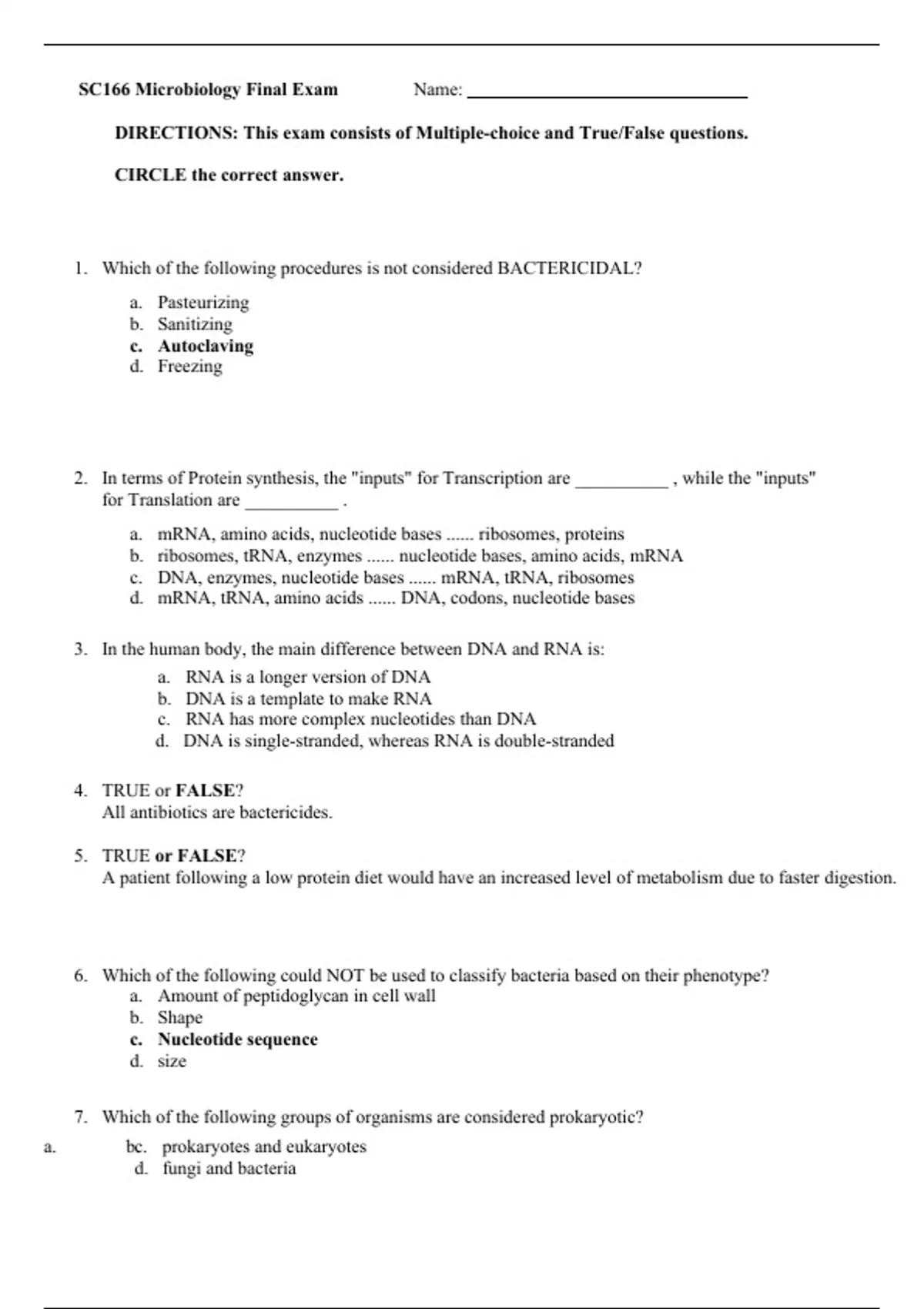 This is the Final Exam of an 8 week course in Microbiology