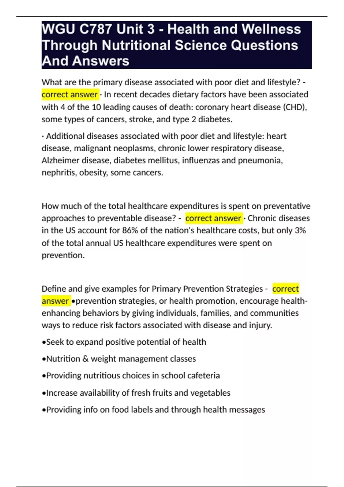 WGU C787 Unit 3 - Health and Wellness Through Nutritional Science Questions And Answers