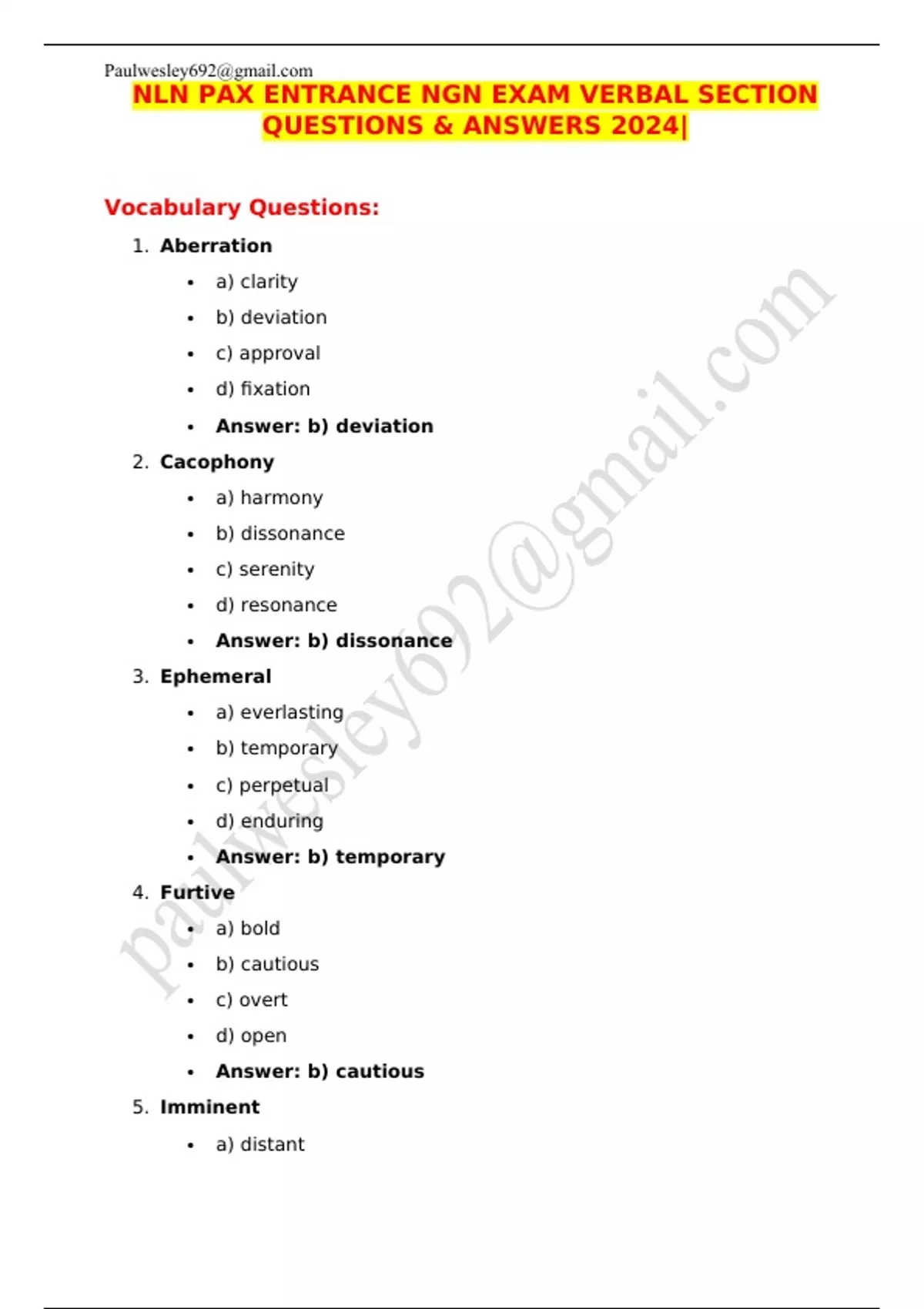 NLN PAX ENTRANCE NGN EXAM VERBAL SECTION QUESTIONS & ANSWERS 2024|