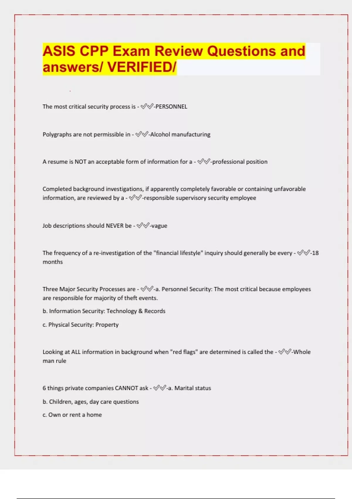 ASIS CPP Exam Review Questions and answers/ VERIFIED/| Questions with 100% Correct Answers | Verified | Latest Update.
