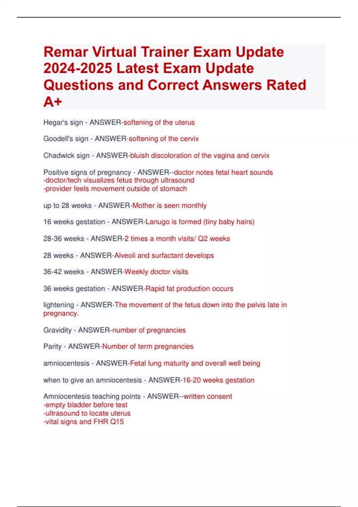 Remar Virtual Trainer Exam Update Latest Exam Update Questions and Correct Answers Rated A+