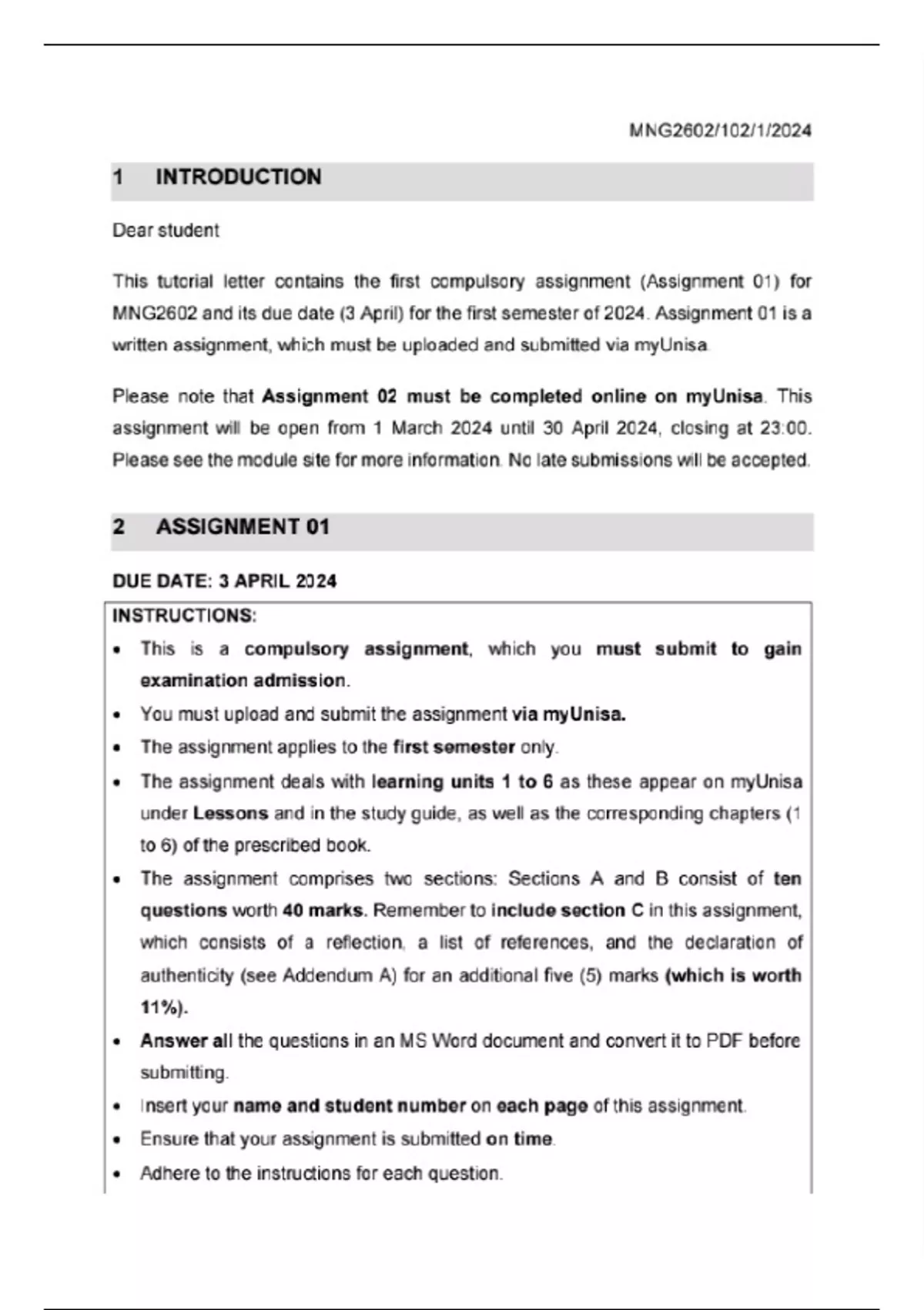 MNG2602 ASSIGNMENT 1 2024 Due 3 April