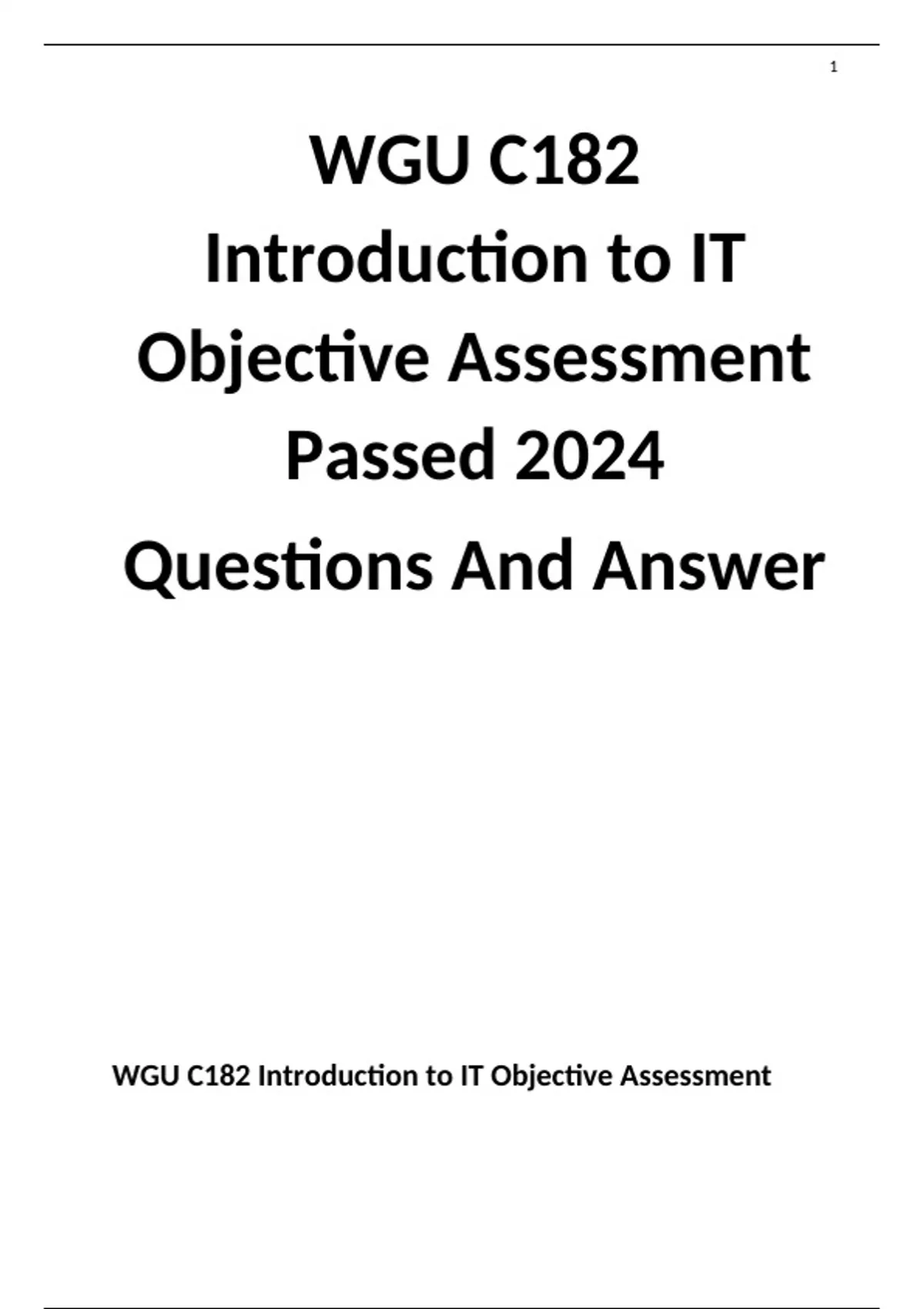 WGU C182 Introduction to IT Objective Assessment Passed 2024 Questions And Answer