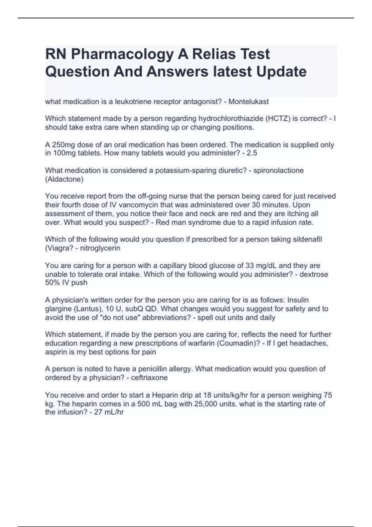 RN Pharmacology A Relias Test Question And Answers latest Update