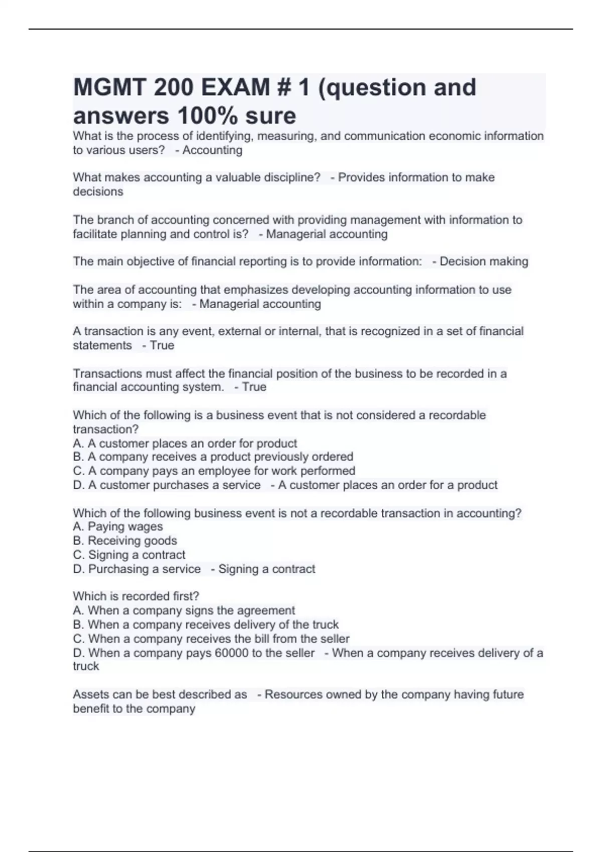 MGMT 200 EXAM # 1 (question and answers 100% sure