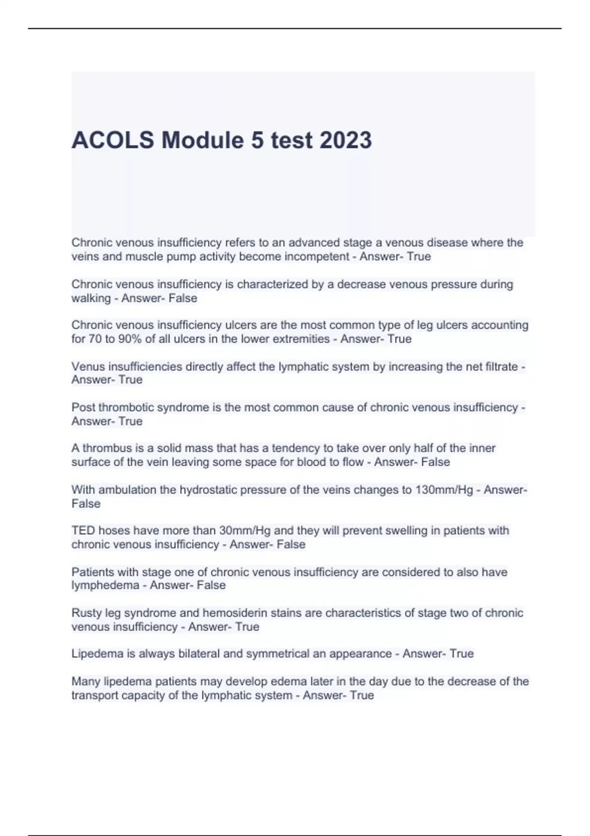 ACOLS Module 5 test 2023/2024 with correct answers