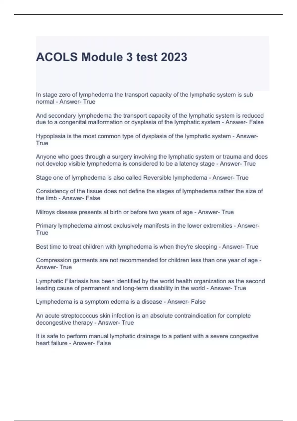 ACOLS Module 3 test 2023/2024 with complete solutions