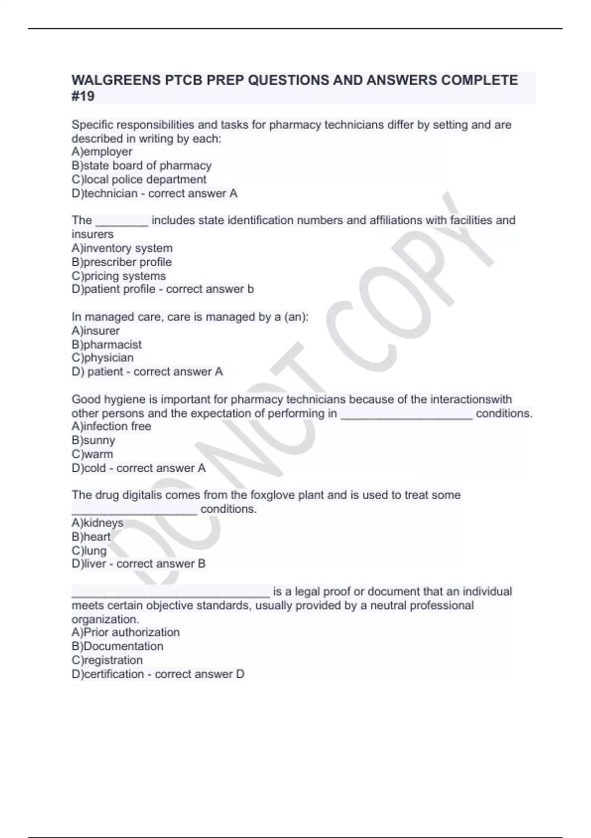 WALGREENS PTCB PREP QUESTIONS AND ANSWERS COMPLETE #19