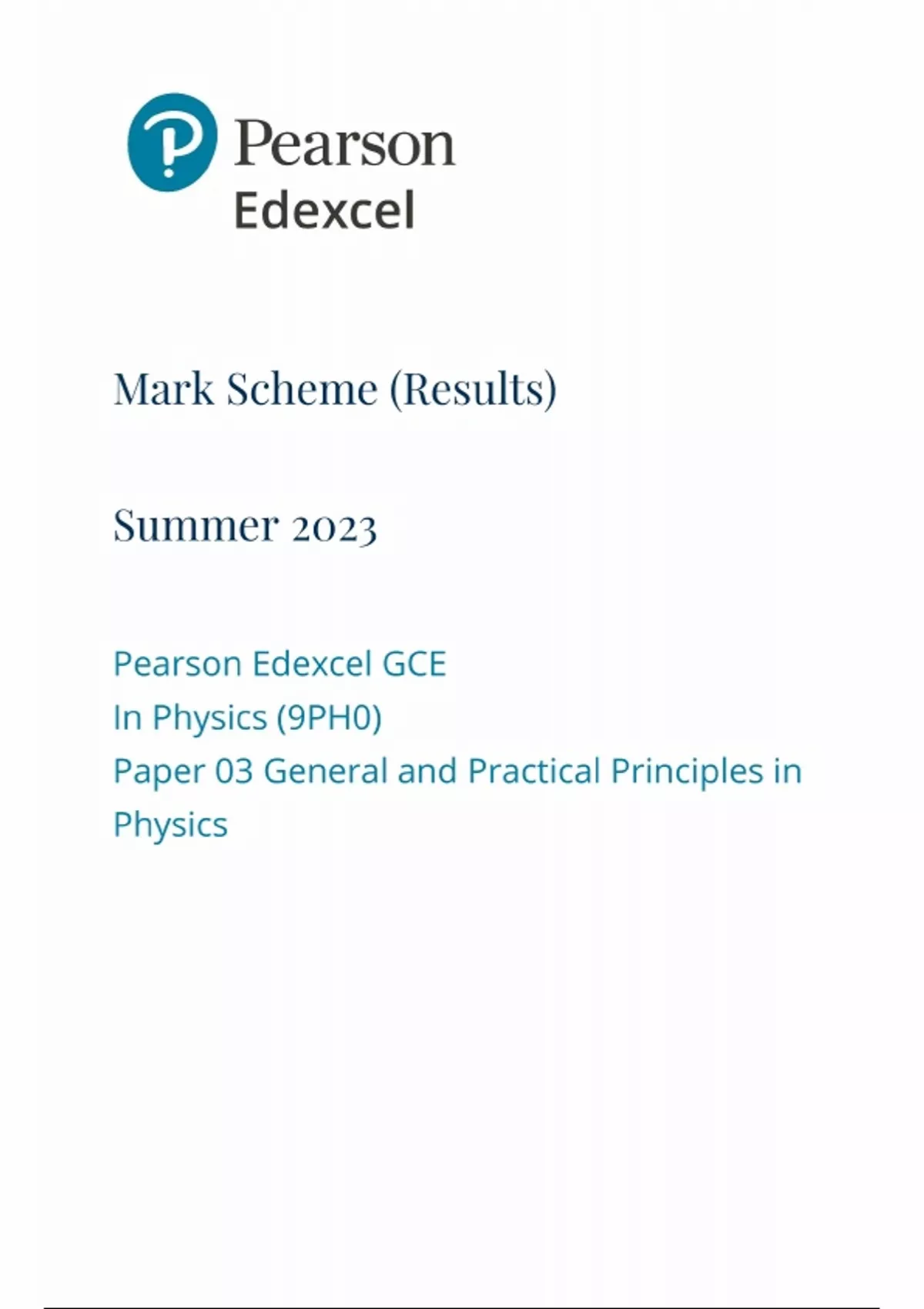 Pearson Edexcel GCE In Physics (9PH0) Paper 3 General and Practical Principles in Physics