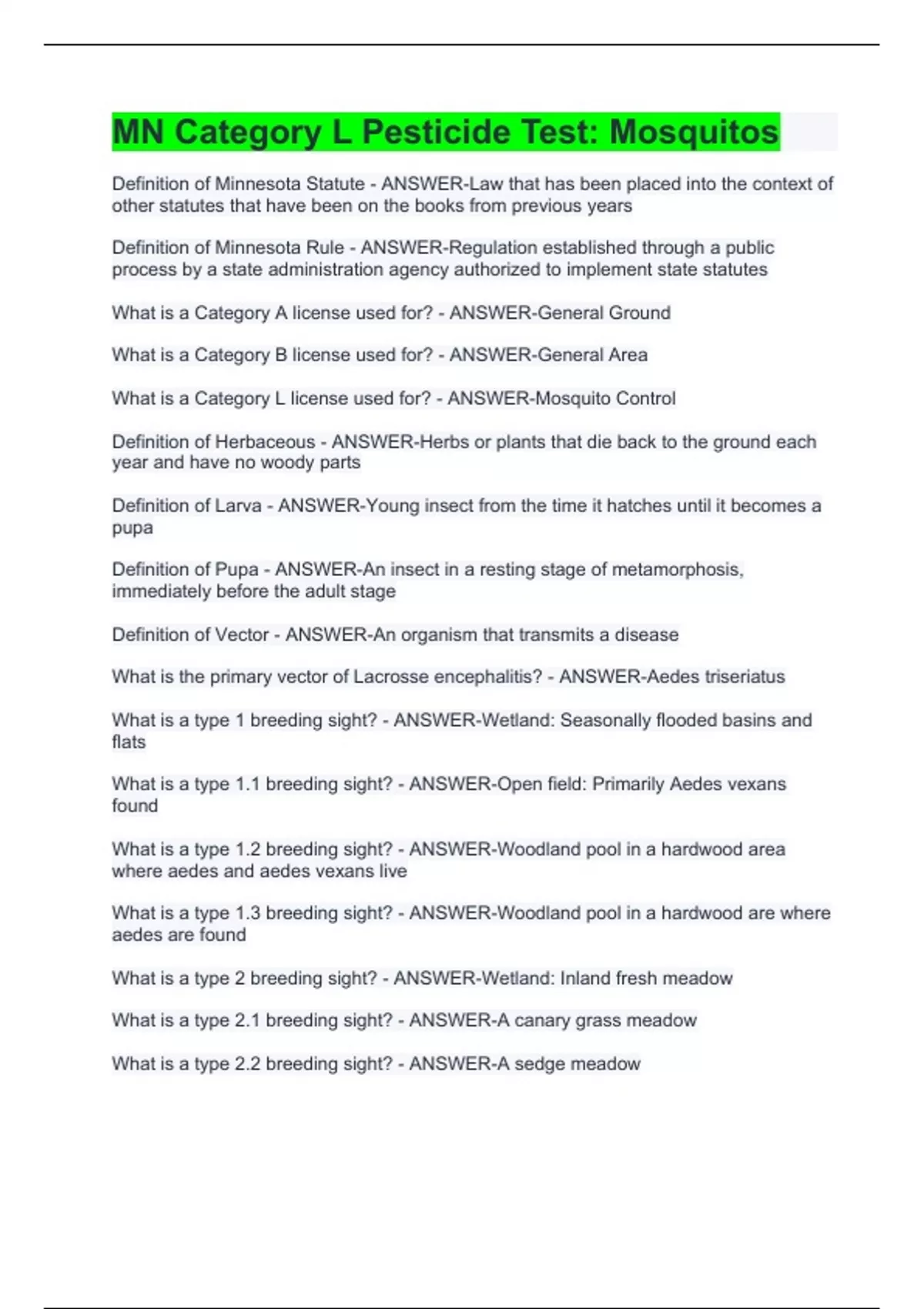 MN Category L Pesticide Test: Mosquitos