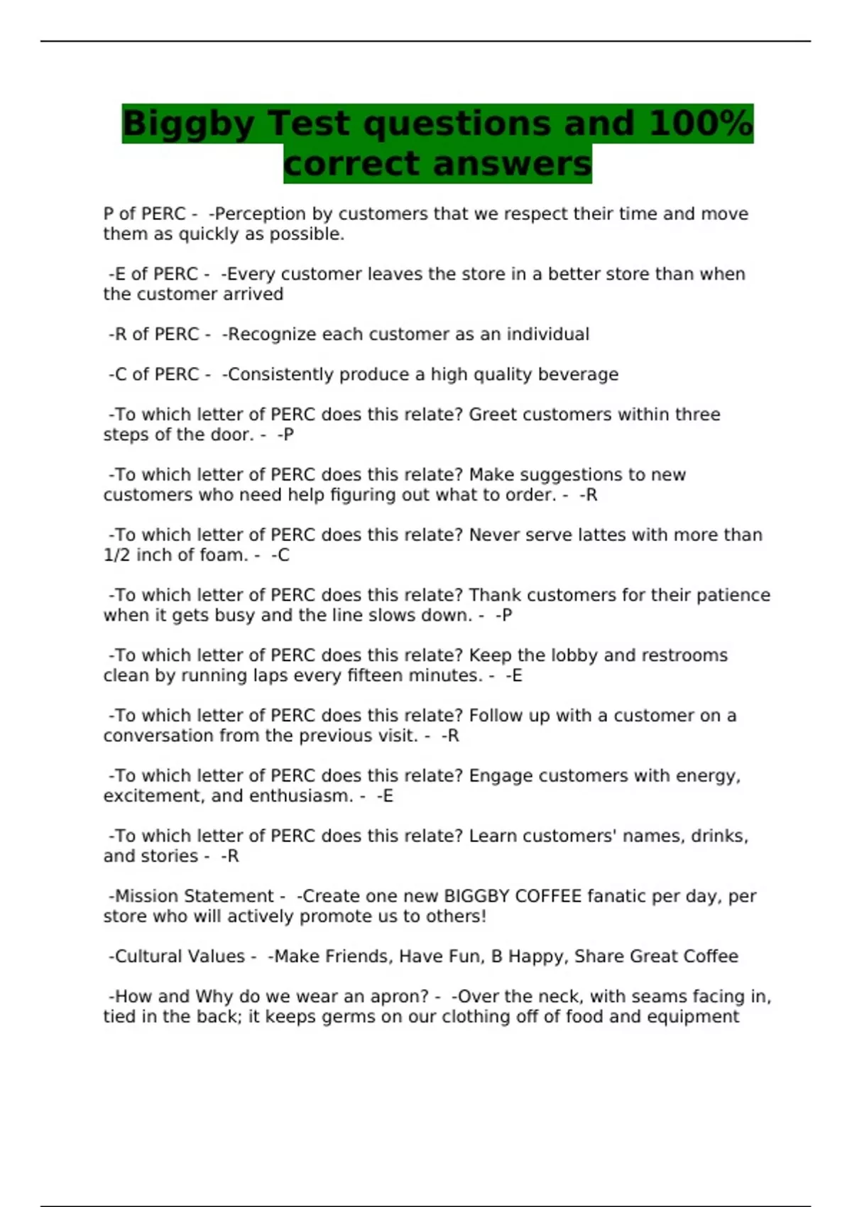 biggby test questions and 100 correct answers
