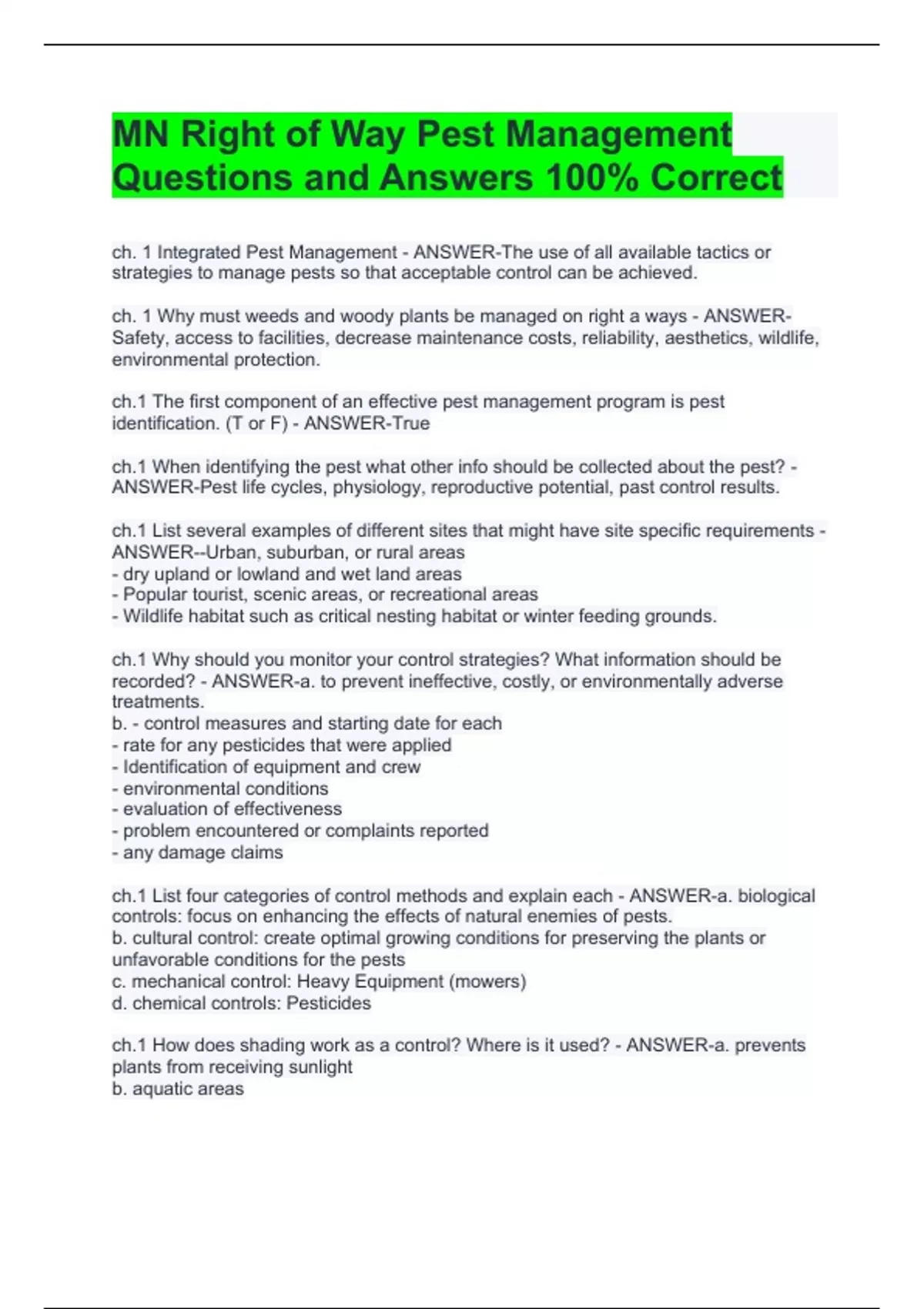 MN Right of Way Pest Management Questions and Answers 100% Correct