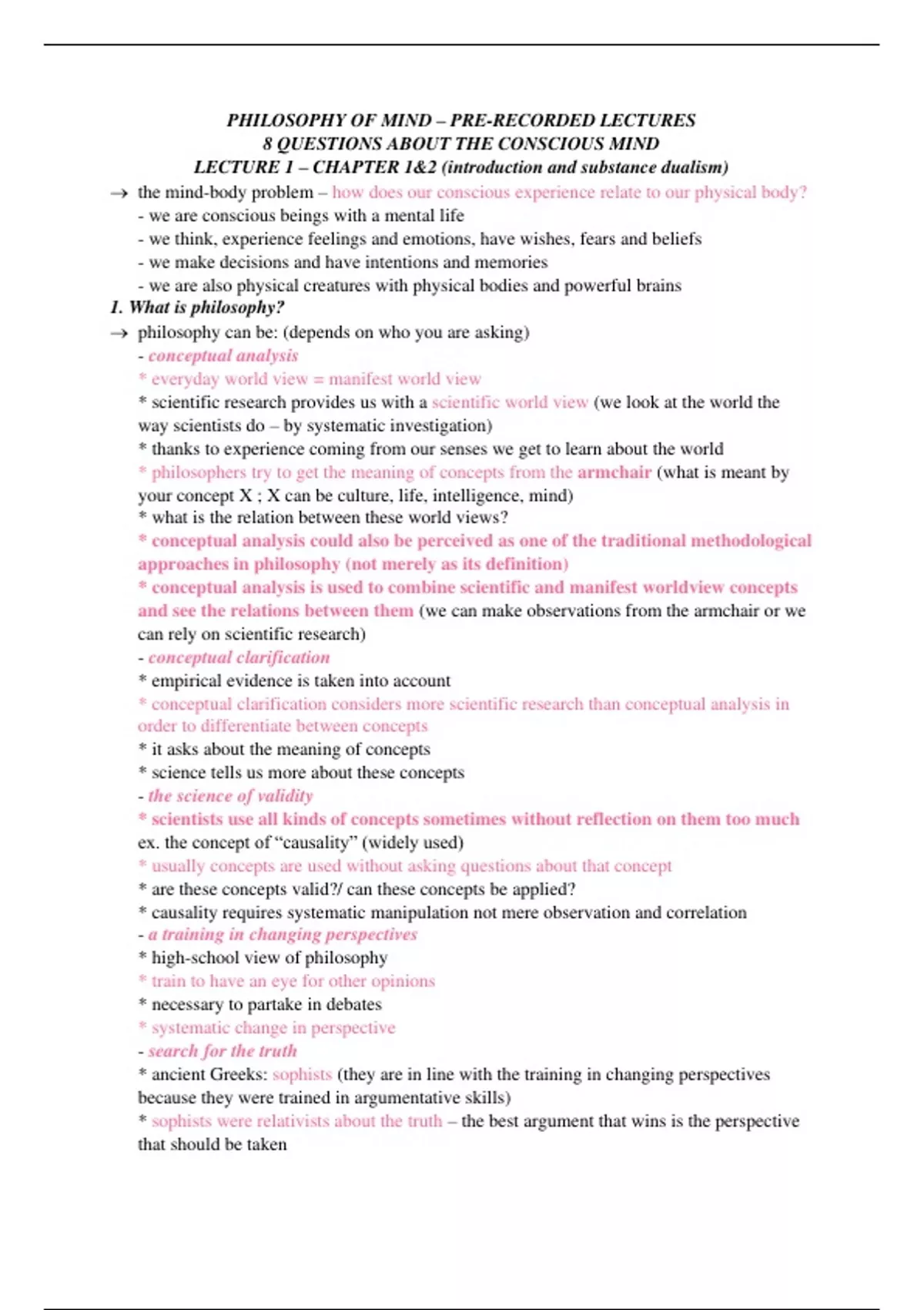PHILOSOPHY OF MIND – PRE-RECORDED LECTURES