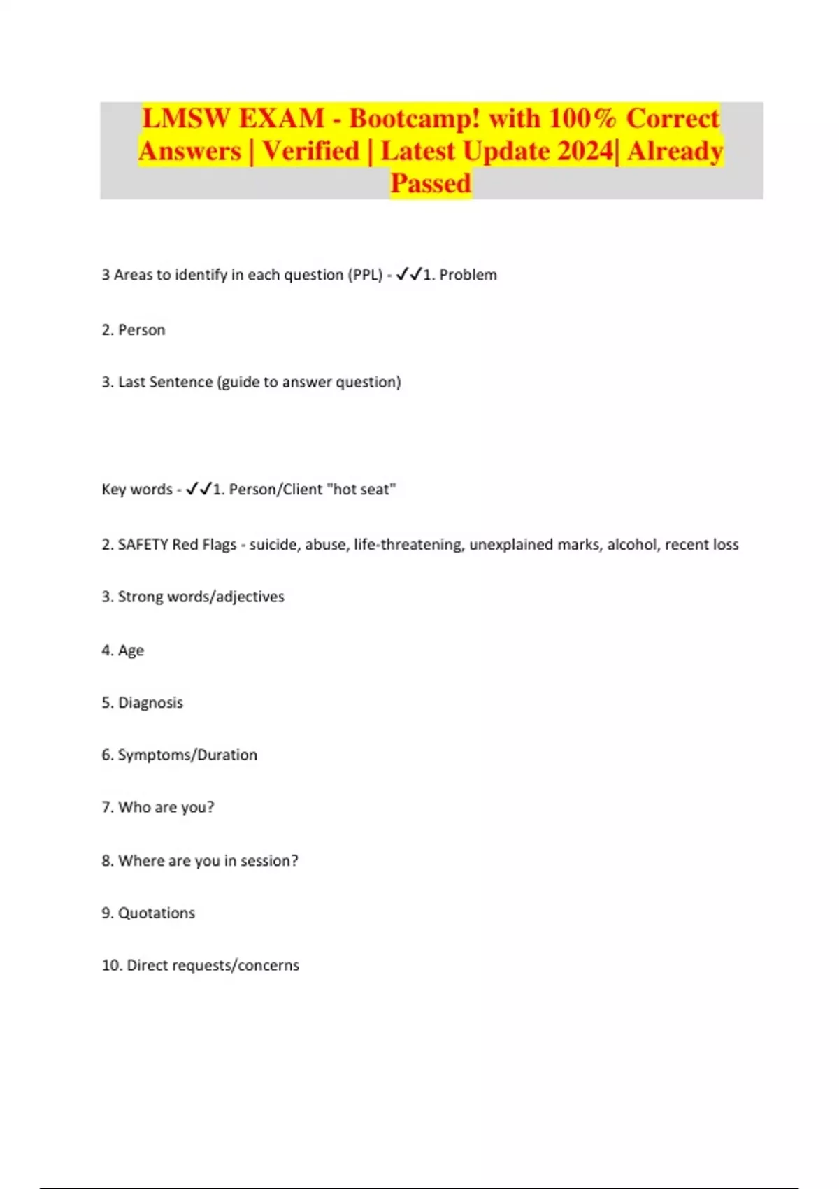 lmsw exam bootcamp with 100 correct answers