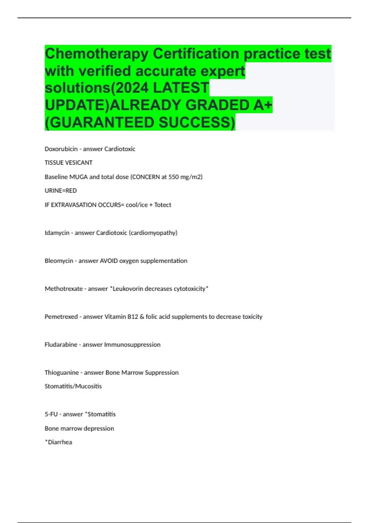 Chemotherapy Certification practice test with verified accurate expert solutions