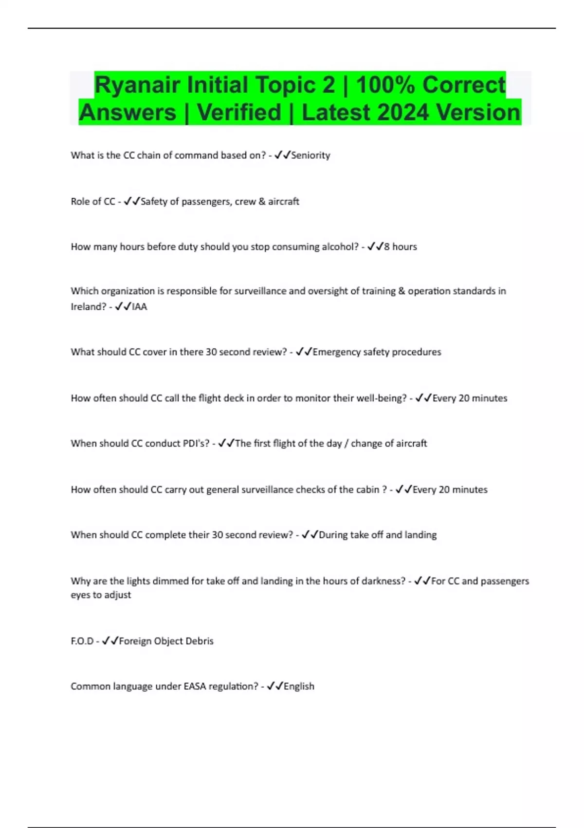 Ryanair Initial Topic 2 | 100% Correct Answers | Verified | Latest 2024 Version