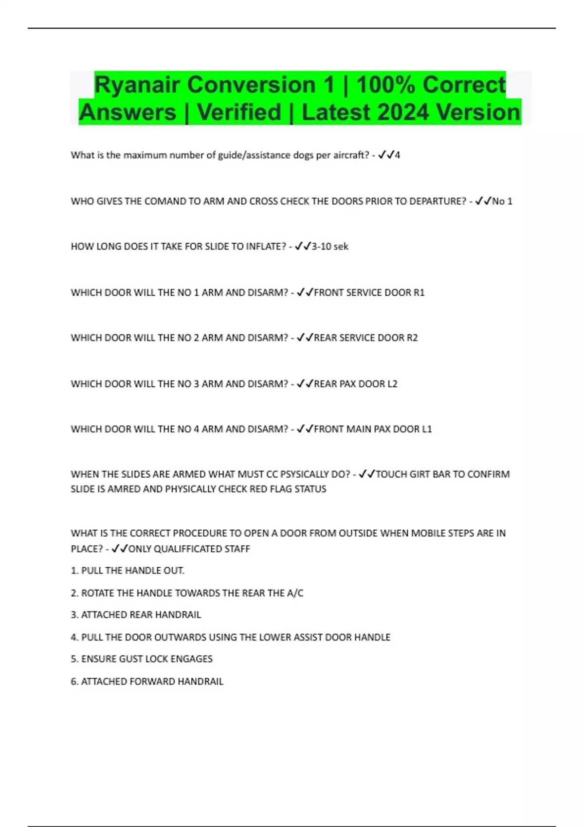 Ryanair Conversion 1 | 100% Correct Answers | Verified | Latest 2024 Version